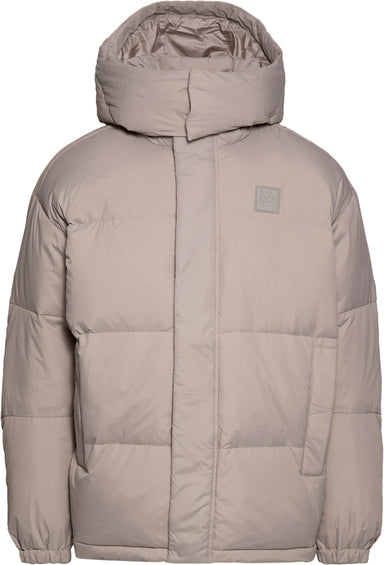Dyngja down jacket is puffy and incredibly warm. With horizontal quilting, the jacket is insulated with high-quality 700 fill-power recycled down, while the outer layer is made of recycled polyester. The jacket is incredibly warm and features a high down-filled collar and a draw-cord hood for shelter, that can be zipped on or off. A snapped downwind flap prevents the wind from blowing through the zipper. The jacket also includes two zippered front pockets, one inside pocket, and a drawstring at the waist to adjust the fit. The recycled down is reclaimed from used clothing and bedding, diverting waste from landfills and extending the lifecycle of the natural filling.