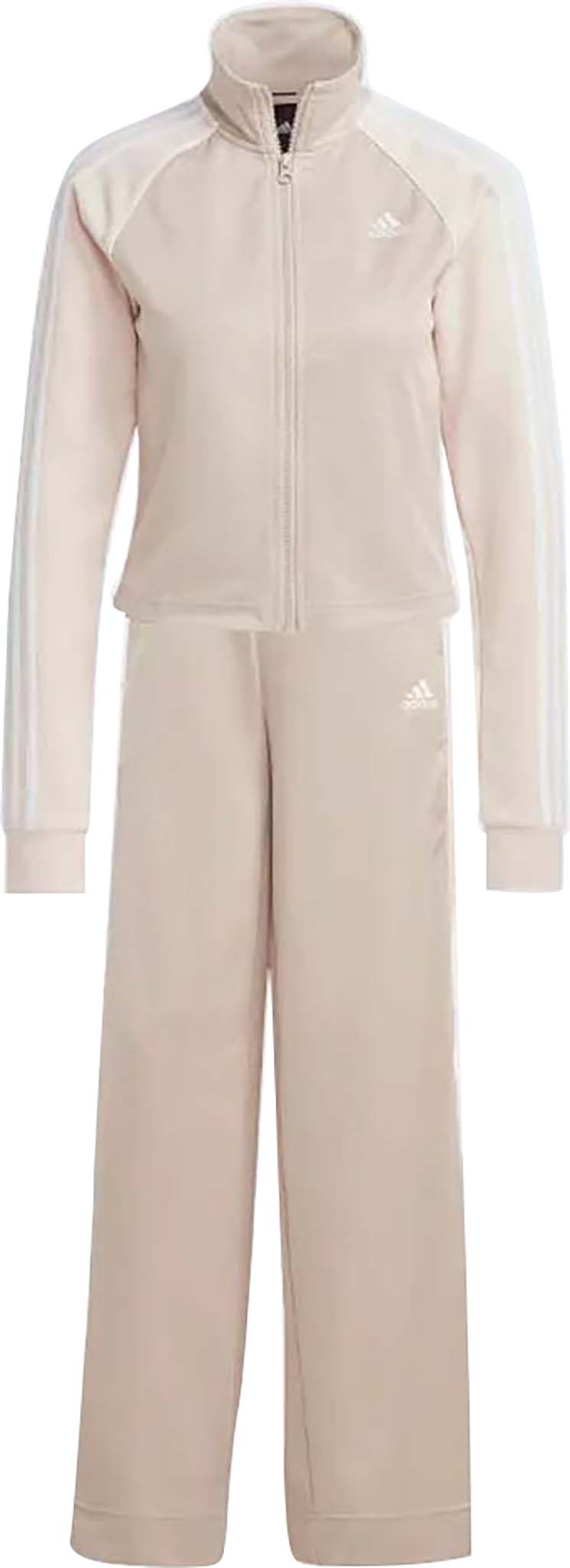 This modern take on the classic track suit will have you looking put-together while staying comfortable. The set makes is fashion-forward while staying minimal with a fitted top, wide-leg pants and two-toned colourblocking. Signature 3-Strips line both the sleeves and pant legs, showing off your adidas pride.