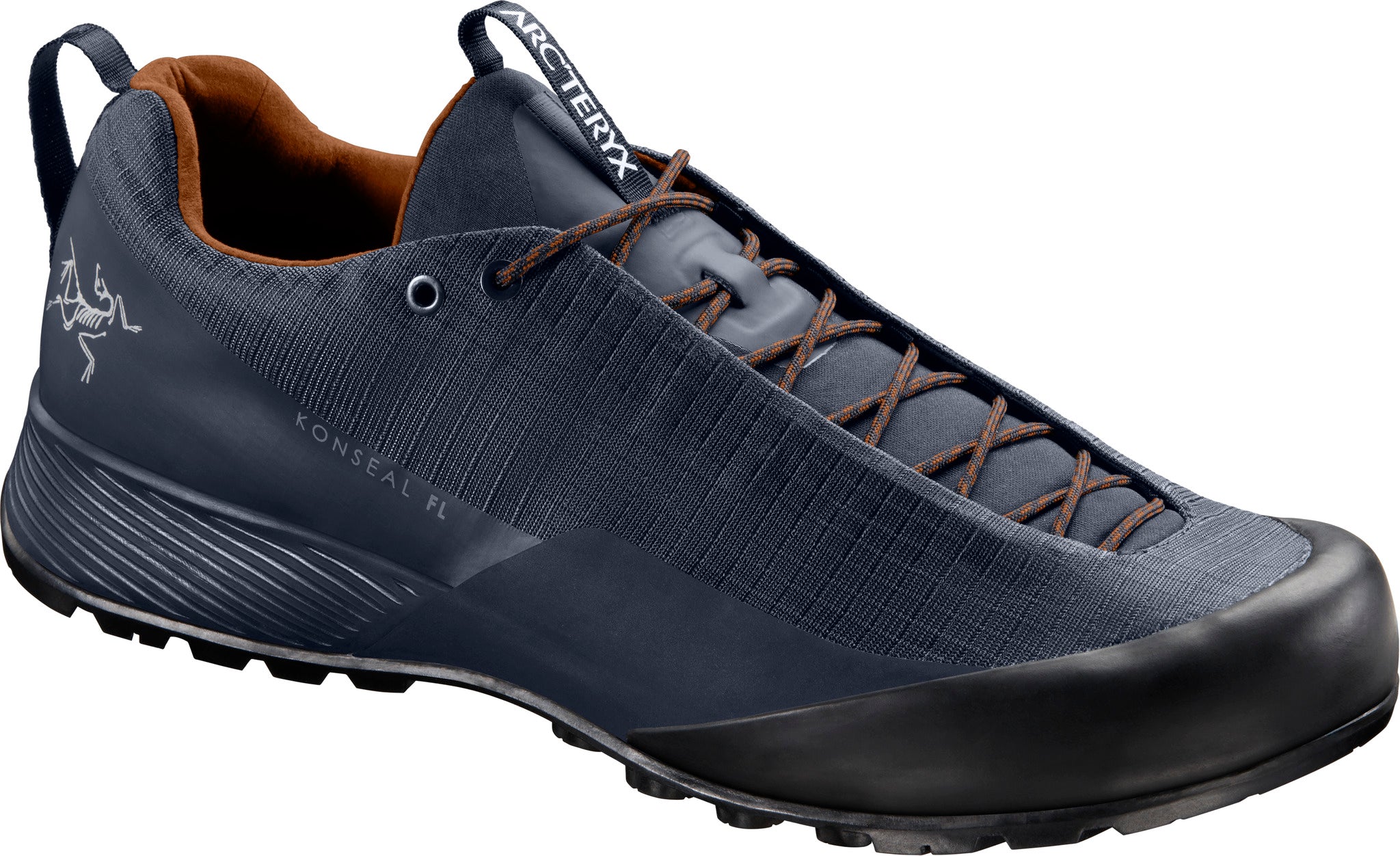 The minimalist men’s KONESAL FL APPROACH shoe is built for fast approaches and adapts to any place where you need confidence and comfort. The Vibram MegaGrip outsole is durable and gives supreme traction. The lug design sole is buffeted by a moulded toe cap and raised sidewalls, offering grip and security. A TPU chassis cradles and protects the foot. The durable EVA midsole absorbs shock and provides precision stability, working with an Ortholite moulded insert for cushioning. The debris-preventing gusseted tongue keeps thing smooth and stable in this efficient, versatile approach shoe.