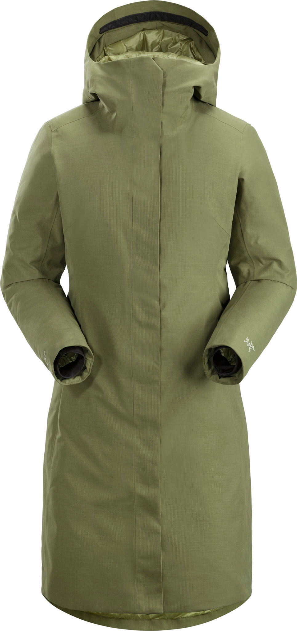 The women’s PATERA Parka is a sophisticated, technical outer layer built with high alpine technology but tailored for the urban winter. 750 fill power goose down combines with Coreloft 100 synthetic for warm, quick-drying insulation. The down is Composite-Mapped to the core and sleeves; dampness-prone areas like the underarms and cuffs use the moisture-wicking Coreloft. Contour Construction forms the down to your body shape, streamlining the garment. A P75d GORE-TEX 2L outer shell is waterproof, windproof, Durable Water Repellent treated, and softer to the touch than standard GORE-TEX. The insulated hood is articulated and adjustable. The tall collar with an extra-warm fitted panel and chin guard ramps up neck protection. A two-way front zip sits behind a wind flap with snap closures. Two zip hand pockets and an internal zip passport/boarding pass pocket store essentials at home or abroad. Anatomically-shaped for a women-specific fit, the PATERA features no-lift gusseted underarms, articulated sleeves, stretch-knit cuffs and a drop-back hem.
