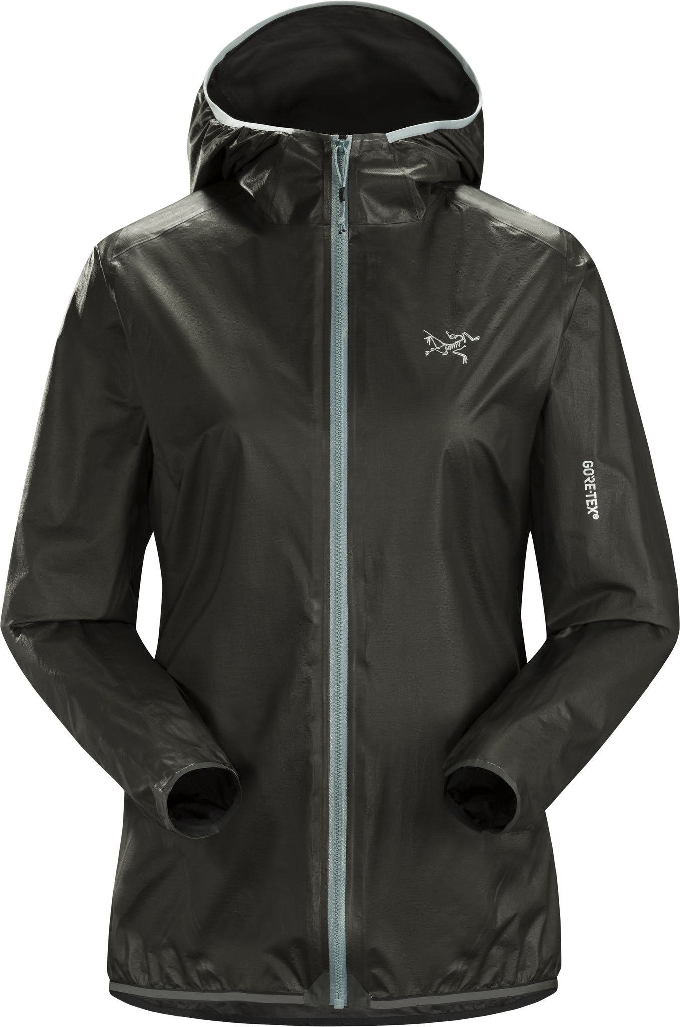Designed for endurance trail running in wet weather, the women’s NORVAN SL Hoody is the lightest waterproof coat in Arc'teryx collection. At only 125-grams, this jacket delivers breathable weather protection for high output running. It’s made of fully waterproof GORE-TEX with SHAKEDRY technology, eliminating the need for a face fabric, reducing excess bulk and weight. The result is a highly air permeable garment that’s immensely packable and maintains solid weather-resistance. The Norvan's ultra-minimalist design includes a fitted hood with an elasticized brim, which rolls-away and secures with snaps. Low-profile shaped elasticized cuffs, and an elasticized bottom hem prevent wind infiltration and drag. Reflective details on the sleeves enhance your visibility in low light conditions.