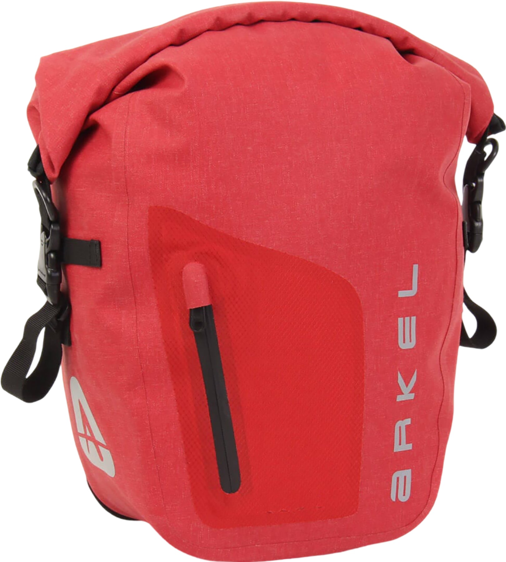 Features • 100% Waterproof RF welded seams • Equipped with our Cam-Lock® attachment system • Front exterior zippered pocket • Top loading design and standing position to pack and unpack easily • Internal organizer • Tabs to mount blinker lights • Reflective material on all sides • A plastic protector at the bottom backside • D-rings to mount an optional shoulder strap • Ethically made in Asia • Assembled in Canada