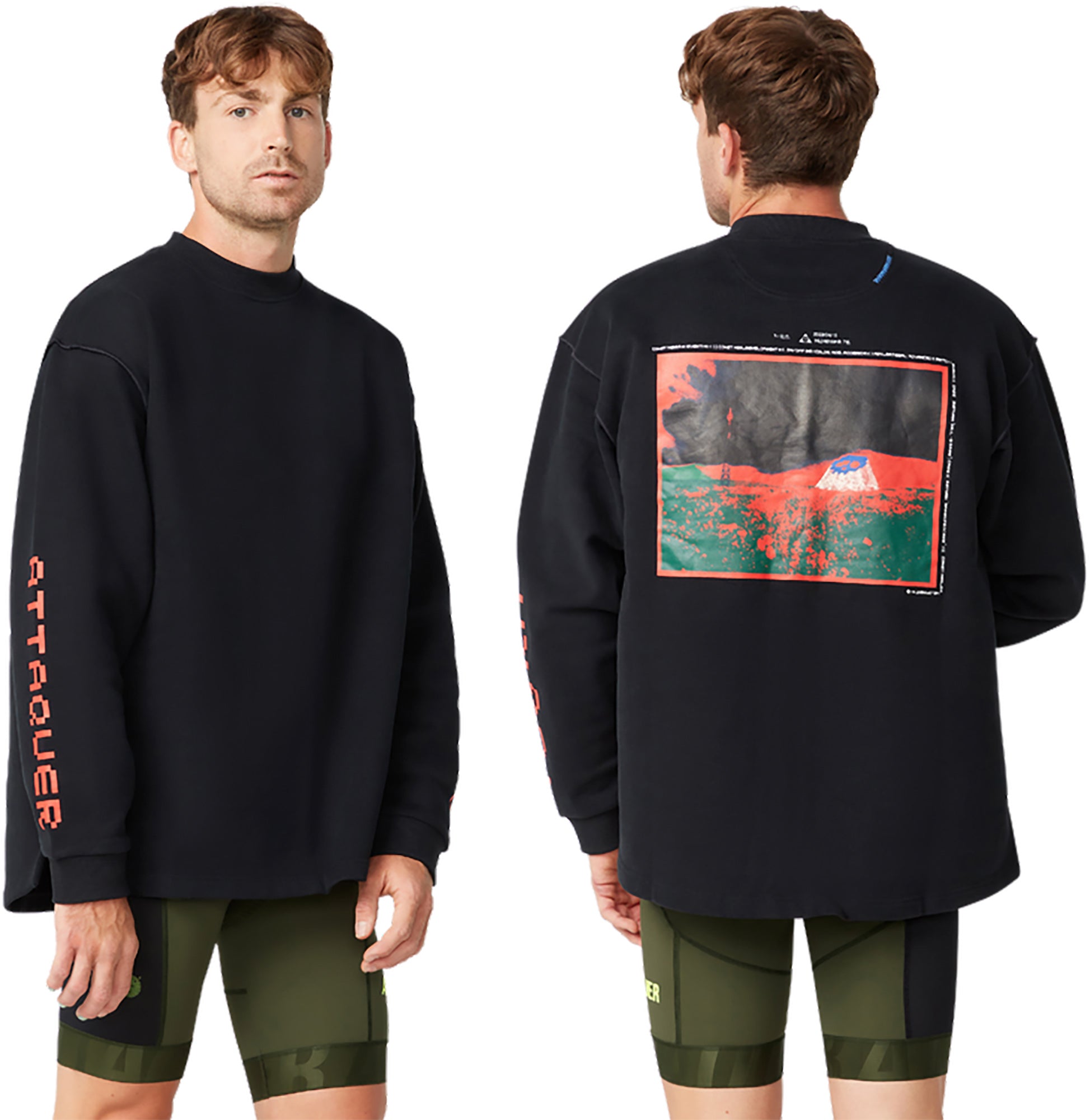 Constructed from premium, heavyweight fleece-backed cotton, the Terra sweater offers a boxy, oversized fit. Dropped shoulders with inverted seam detailing, broad sleeve cuffs and a tall crew neck provide a unique silhouette and perfect way to style Attaquer and stay warm off the bike.