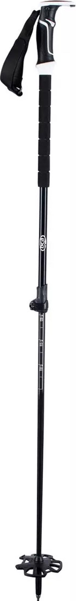 The BCA Scepter Carbon Aluminum Poles are our stiffest adjustable ski touring poles. The Backcountry Access Scraper Grip is designed to be secure and comfortable while keeping your skis snow-free. Subtly on the grip, you will find the utility hook which makes for an effective binding and boot adjustment while on your excursion-a small yet very functional detail. Carbon lower+7075 aluminum upper shaft with a sprayed-on grip texture coating makes for the lightest choke-up grip possible. This keeps you from dragging extra weight up the mountain and saves your legs for what matters most.