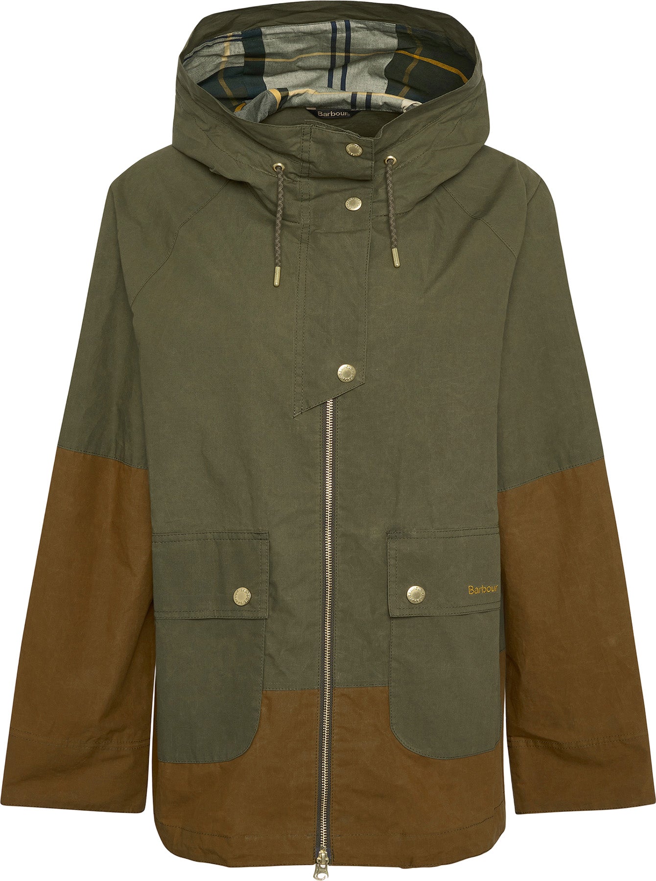 The Barbour Hayley Showerproof jacket features colour-blocked sleeves and body for a modern and eye-catching design, while the tartan lining on the hood and under cuffs adds a touch of heritage charm. The fixed hood provides reliable protection from the elements, while the exposed centre front zip with top placket offers a contemporary touch. The drawcord at the hem allows for a customisable fit. The Hayley is a perfect blend of comfort and style, ideal for everyday wear or casual outings.