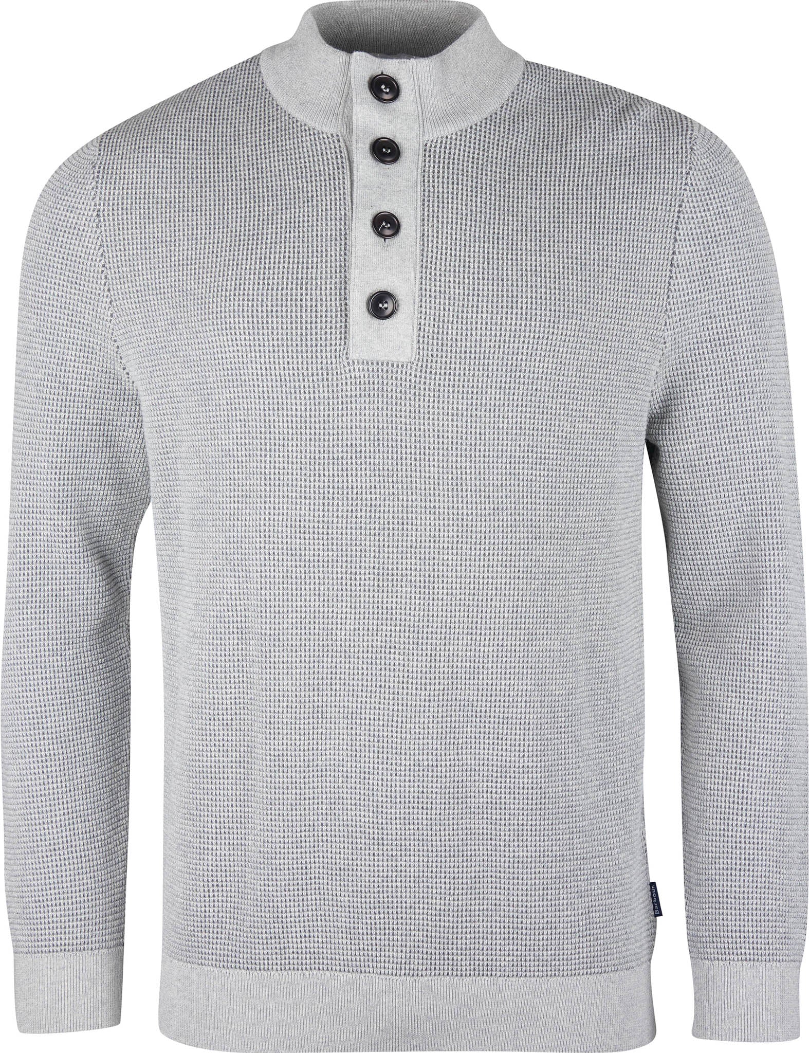 Tartan waffle textured knit with Barbour branded button fastening, seasonal tartan to under placket and D-back and tonal rib to collar, cuff and hem.