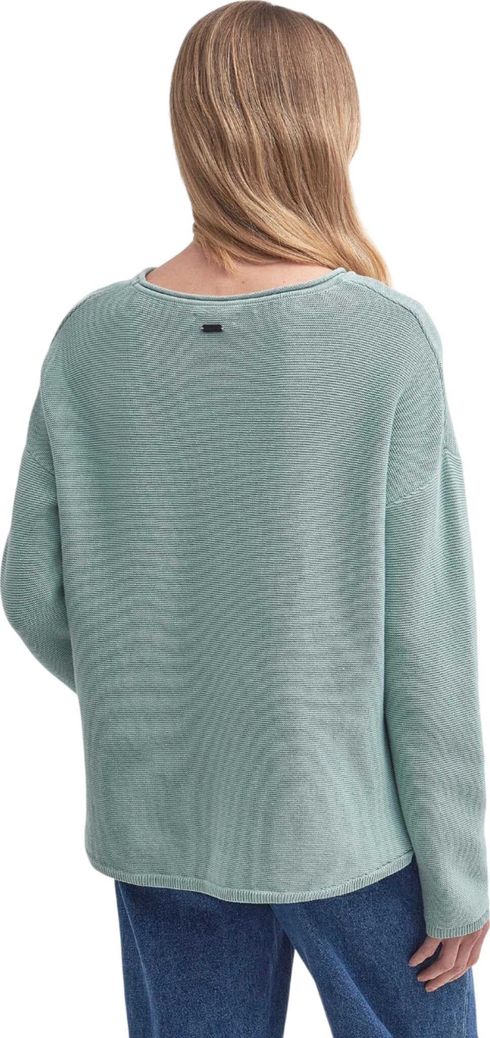 Easy cotton knit with all-over linklinks stitch featuring dropped shoulders, side splits and stepped hem with ID bar at back neck.