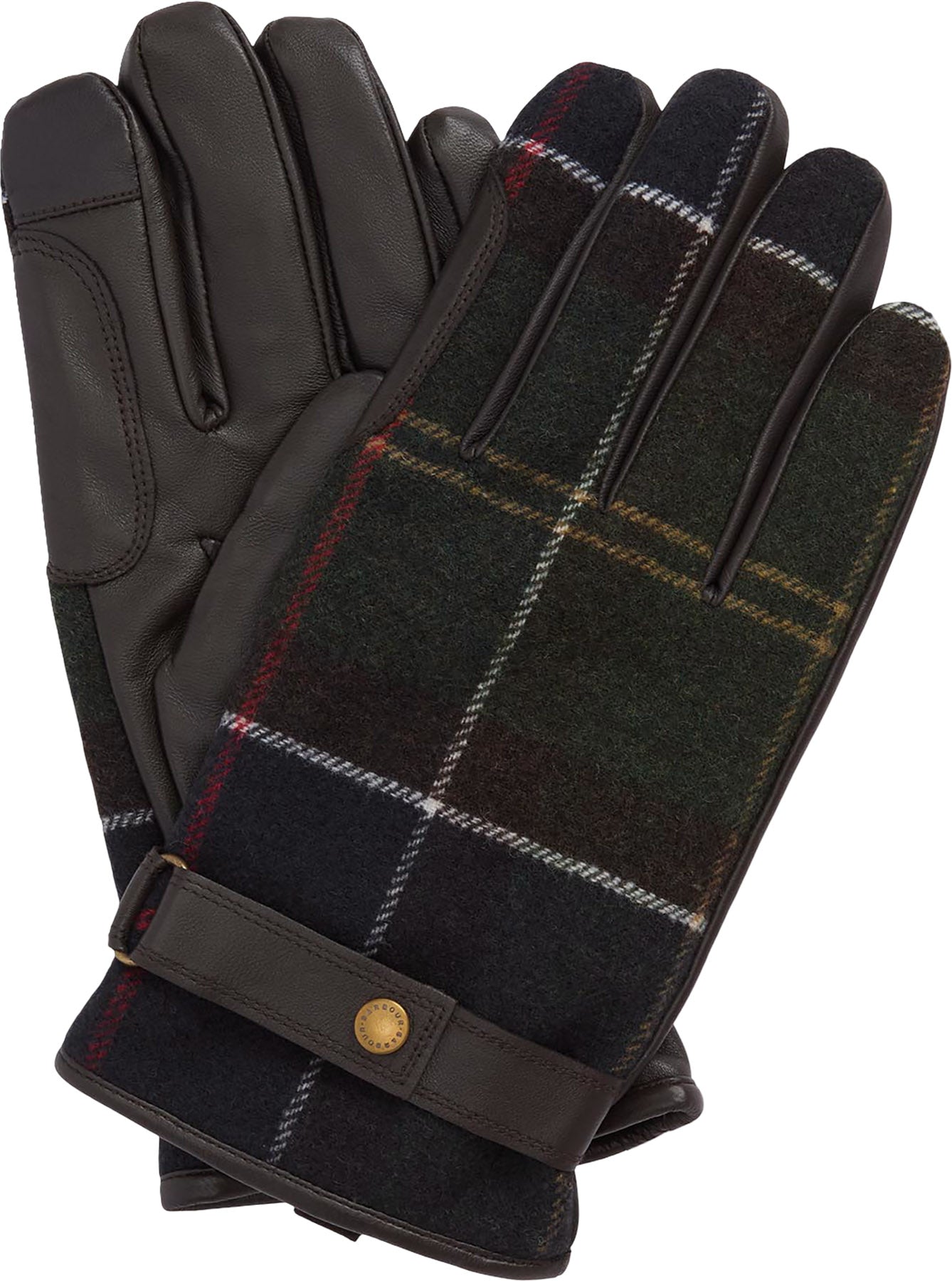 Teaming fine leather with Barbour's signature Classic Tartan wool, these sophisticated men's gloves feature stud-close strap fastens at the cuff.
