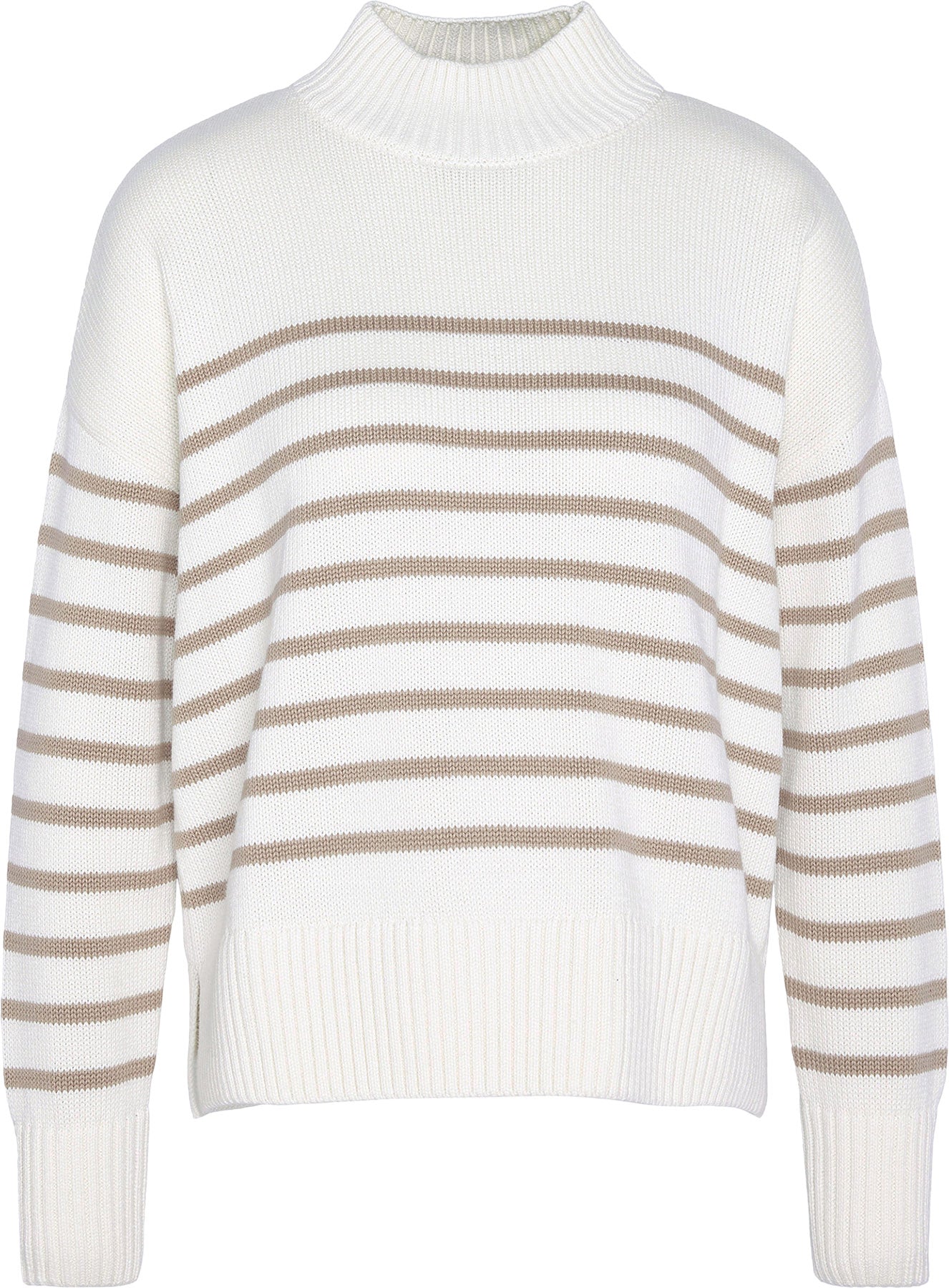 Showcasing a funnel neck design, the Barbour Shelly Knit features an all over horizontal stripe in a breathable 100% cotton.
