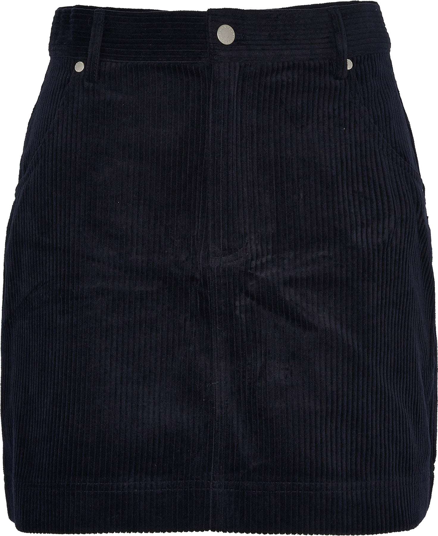 Corduroy skirt with back and front pockets, Barbour rivets to pocket and belt loops.
