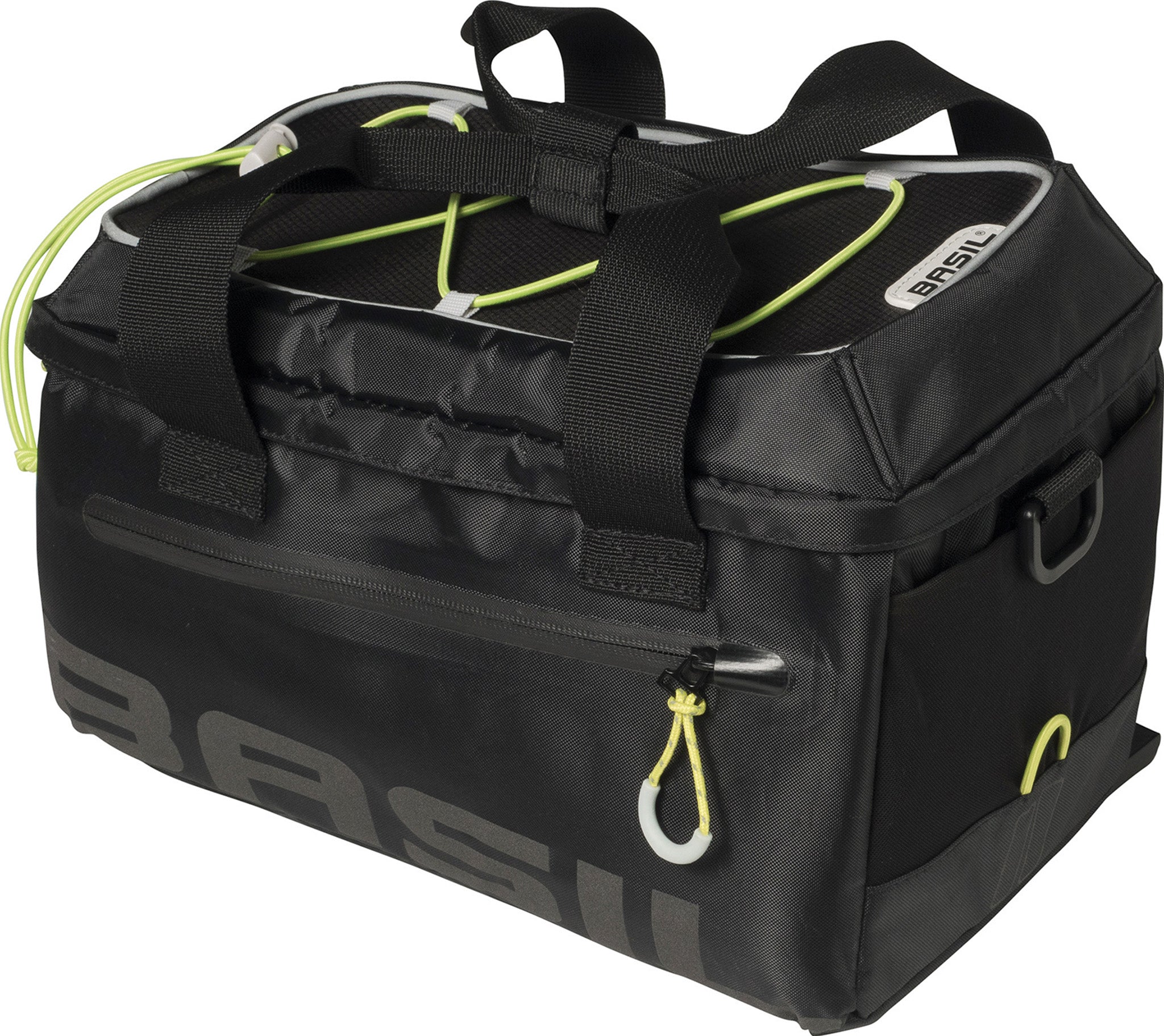A bike ride through your own country or a visit to the center, this bag makes your bike ride fun and easier. Is it going to rain on the go? Then the waterproof material ensures that the contents of the bag remain dry. The luggage rack is easy to install by using the supplied fastening straps and is suitable for all luggage racks(including i-Rack, Carrymore and Racktime). The color palettes make the bag sporty and stylish. Due to the reflection details and confirmation for(LED)lighting, you are more visible in the dark. The bag closes with a zipper and has a roller closure on the inside. The Miles top case has an adjustable elastic at the top of the bag, ideal for taking a bottle of water or magazine. The bag is made of polyester and has two compartments on the side and a zipper on the inside of the bag.