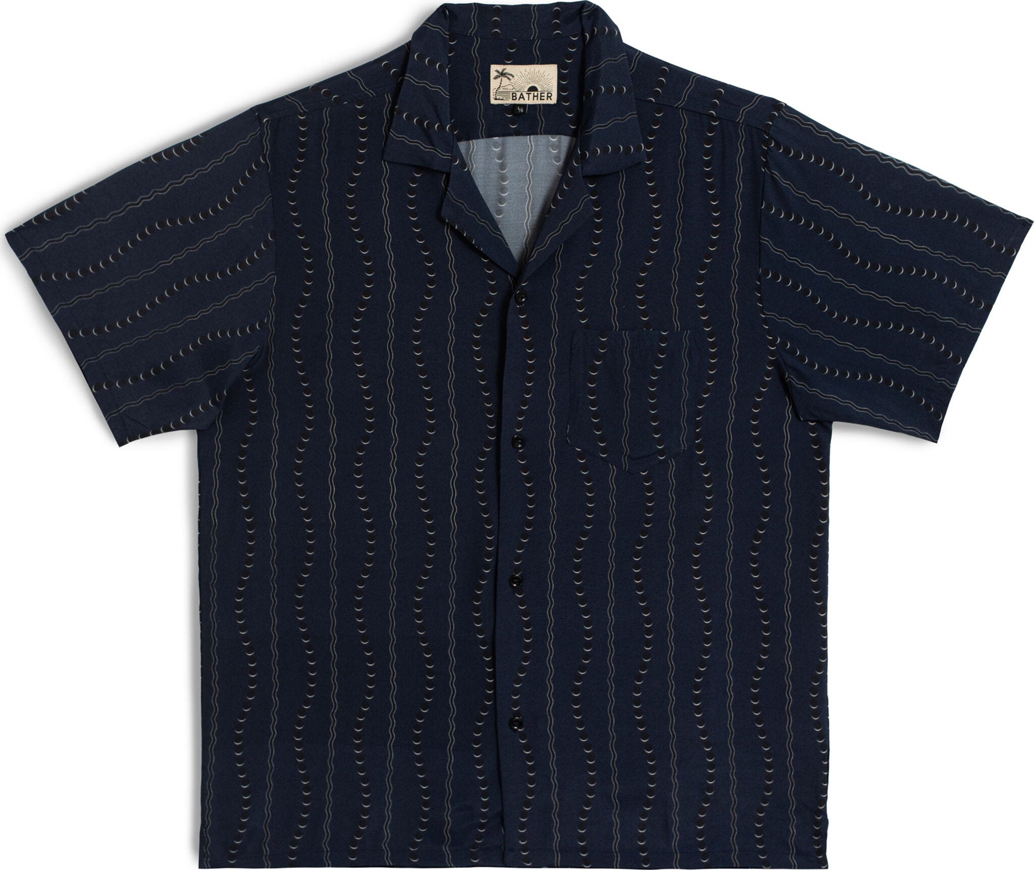 Bubbles? Seaweed? We don’t even know. This pattern was inspired by Kyle watching Finding Nemo for the first time. An easy, timeless classic. Just like this pattern. Our classic camp shirt silhouette is now made in Rayon. Free-flowing, lightweight, and elegant, Rayon is a versatile fabric that absorbs sweat better than cotton, while still looking as sexy as silk.