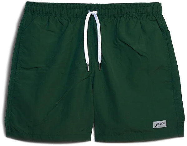 The classic Swim Trunk in Pine is the newest addition to the Bather collection for Spring/Summer 2020. Unlike the classic Surf Trunk, the Swim Trunk features an elasticized waist with an ultra-fine four-way stretch mesh lining.