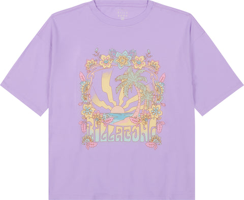 The Billabong Sun Dial Oversized Short Sleeve T-Shirt delivers effortless comfort with its relaxed fit and soft cotton fabric. Designed for easygoing style, it features a bold graphic print and a worn-in feel that pairs perfectly with shorts or leggings. Whether it's beach days or casual hangs, this tee keeps it cool and comfortable.
