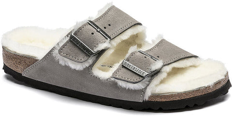 The bolder, the better ! This is a wonderfully comfy version of the classic Birkenstock Arizona model with shearling footbed lining and straps lined with lambskin. The sandal can be individually adjusted to the wearer’s feet using the two metal pin buckles in a vintage look. This ensures an excellent fit and firm grip. The comfort level is boosted by the flexible EVA outsole with signature Birkenstock bone profile, which enables a healthy rolling motion.