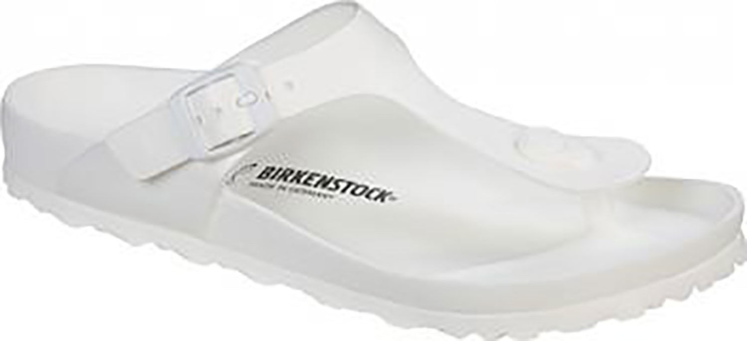 The GIZEH EVA sandal for him and her was modeled on the cork classic, but in a comfy shock-absorbing foam with ultra-lightweight construction. The entire sandal is crafted from a single piece of EVA foam. The flexible insole is anatomically-shaped and skin-friendly. It’s waterproof, washable and has all of Birkenstock’s classic comfort.