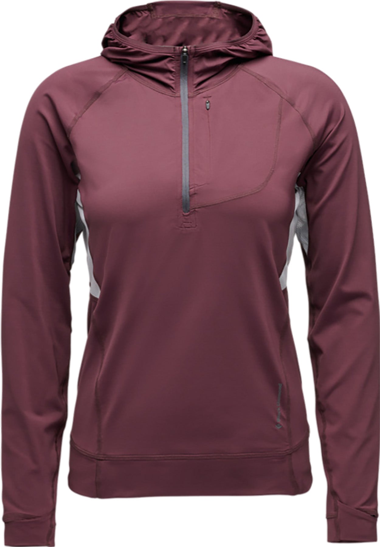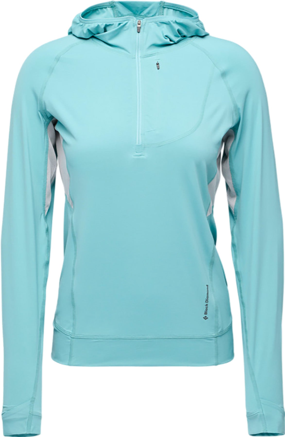 The Black Diamond Alpenglow Pro Hoody offers ultimate sun coverage as well as water resistance for mountain missions with unpredictable weather. Featuring UPF 50+ fabric, we’ve also added GTT's revolutionary Empel™ Technology, an environmentally friendly PFC-free water-repellant finish that is superior in performance compared to any other C-6, C-8, or C-0 DWR. The Alpenglow Pro also sports a ¼ zip opening for regulating body temperature, HeiQ Pure underarm mesh panels for extra breathability, a concealed chest pocket, thumb-loops, and an over-the-helmet compatible hood, making this hoody an essential layer from the desert to the alpine.