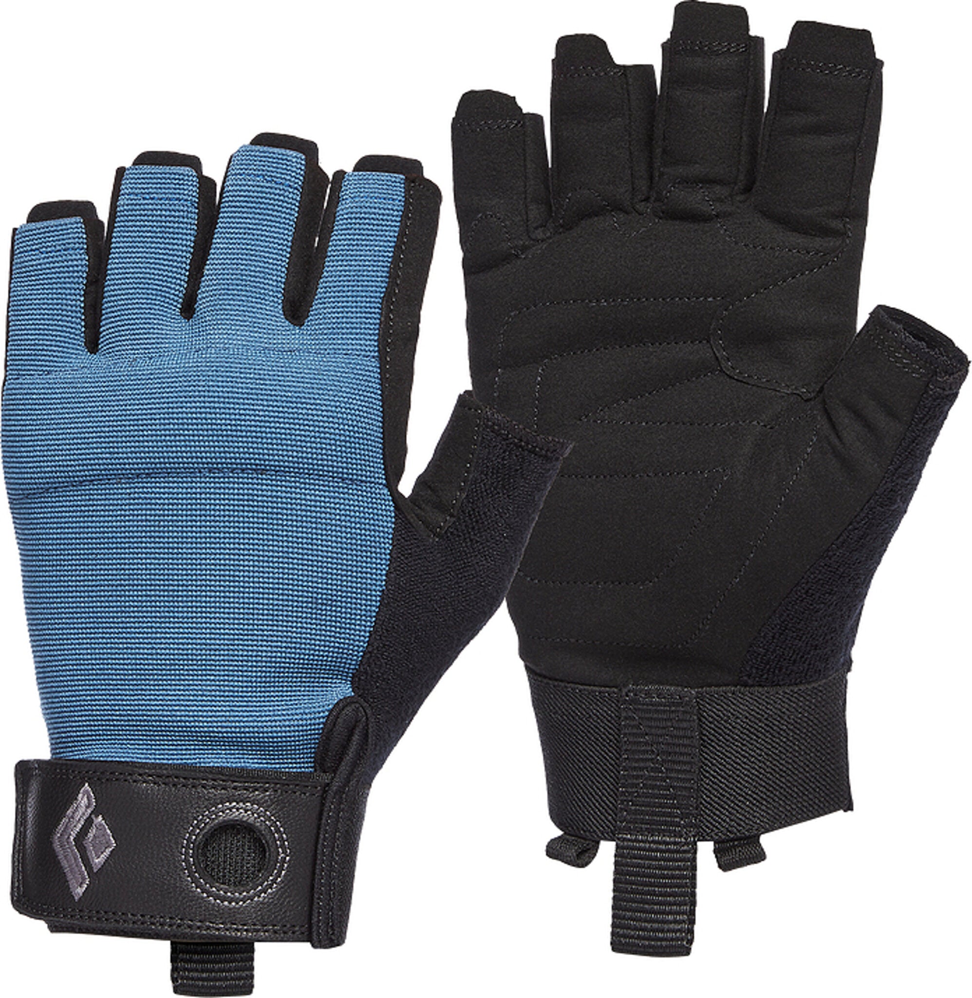 A lightweight, breathable cragging glove for belaying and via ferrata, the Black Diamond half finger Crag Gloves protect your hands without compromising dexterity. Now featuring an updated finger construction for improved durability, and a sleek, low-profile modern Velcro wrist strap, the Crag provides a firm grip, comfortable fit.