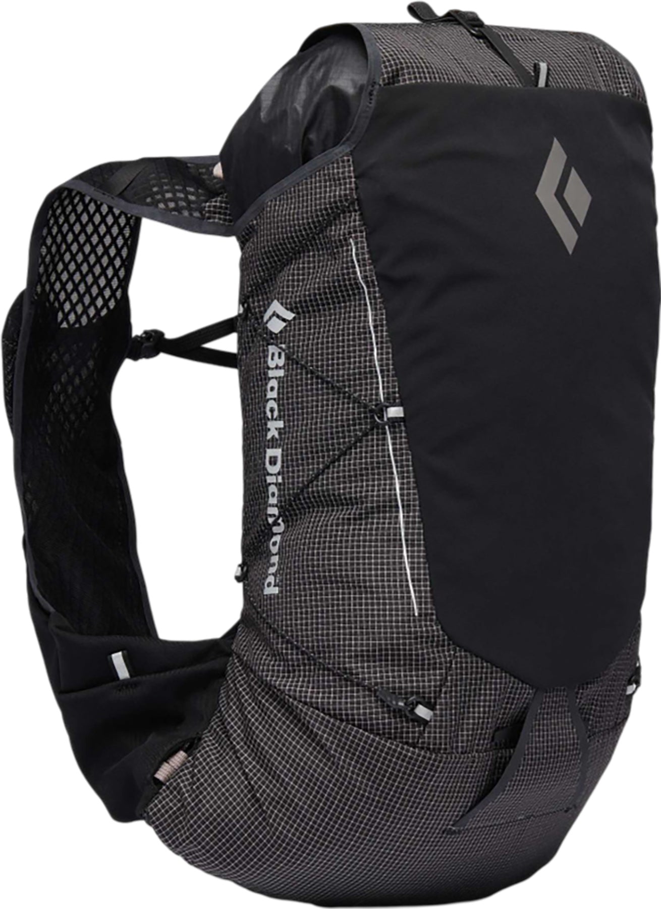 With a hybrid design that includes vest-inspired suspension for running, the Distance 22 combines lightweight and comfortable running technology with ample extra storage for mountain endeavors. The pack is made with BD SETT(Stitch-less Edge Taping Technology)that improves fi t, comfort and durability on the move. The Distance 22 is fully equipped with Z-Pole storage that’s easy to deploy on the go, plus dual piolet carry options.