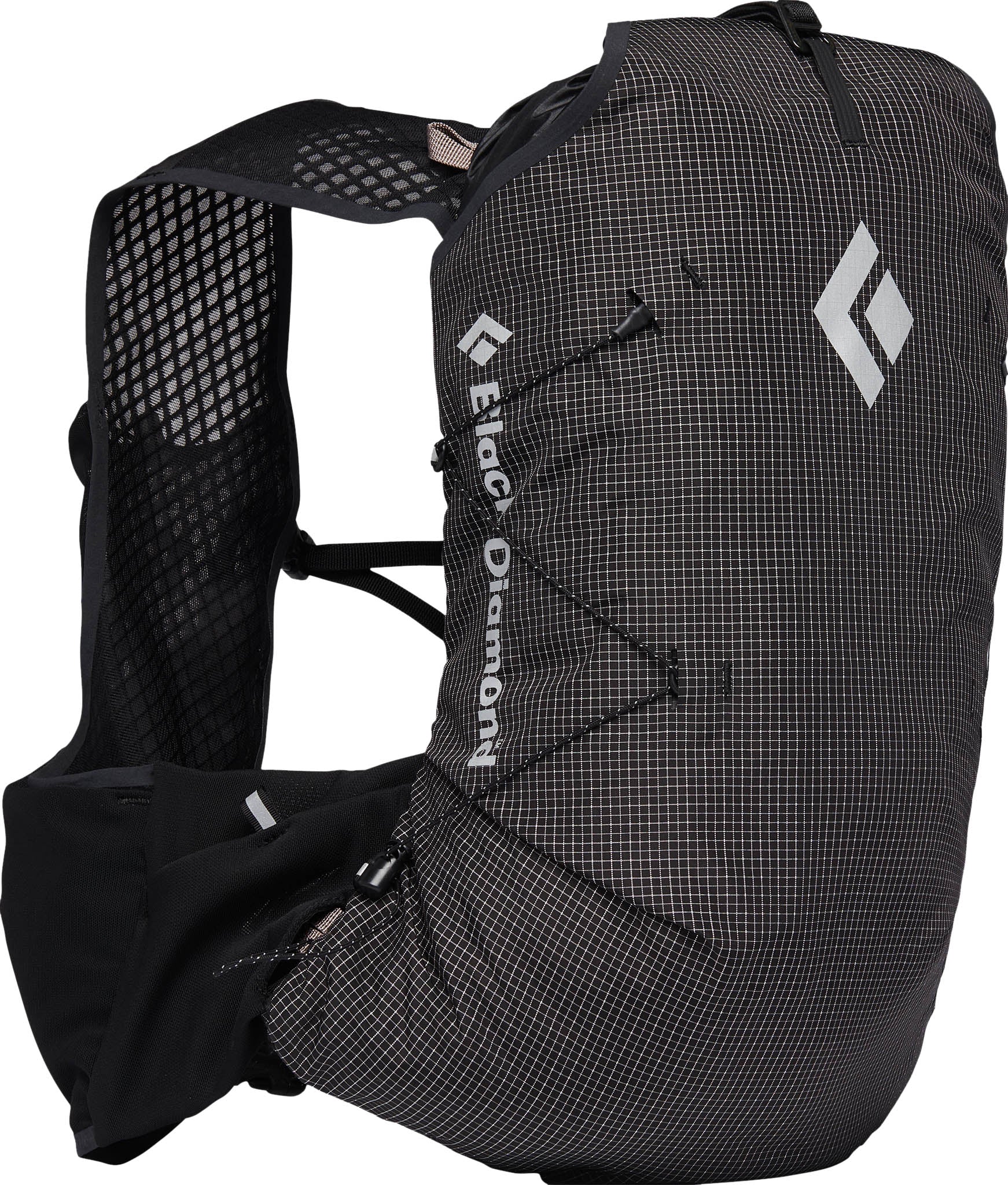 This hybrid pack blends running vest technology with our intimate knowledge of alpine pack systems to carry the gear you need, while remaining featherweight and comfortable enough to move at a fast clip. Built from our UHMWP 10x Ripstop Yarns-the same burly material we use in our climbing dogbones and Ultralight Camalots-the Distance’s fabric is literally 10-times stronger than steel per weight, while remaining so light it floats in water. The shoulder strap harness system utilizes our Stitch-less Edge Taping Technology-meaning the shoulder strap edge binding is fully edge taped instead of sewn, more like today’s innovative sportswear then a traditional running backpack-which allows for superior comfort, movement, and weight reduction. Also, the harness system is constructed with an adjustable, elastic-cording side compression system, which gives you a more secure ride while running scrambling and climbing. This vest-like system also includes dual flask pockets that fit two BD HydraPak® SoftFlask™(Sold separately)and a Deploy pocket to stash the BD Deploy Wind Shell. The pack portion of this Distance includes a quick Blitz-style main opening with a stash pocket to tuck away essentials, while a mesh divider wall can store cordelette or a water bladder that can integrate with the pack’s hose routing. On the pack’s exterior, the Distance 8 includes dual piolet/ice axe holsters, and dual Z-Pole quiver sleeves to stash your trekking poles when the terrain changes. Dual front stretch pockets are an extra place to stash nutrition or gear, making the Distance 8 an ultra-versatile pack for moving light and fast in the mountains.