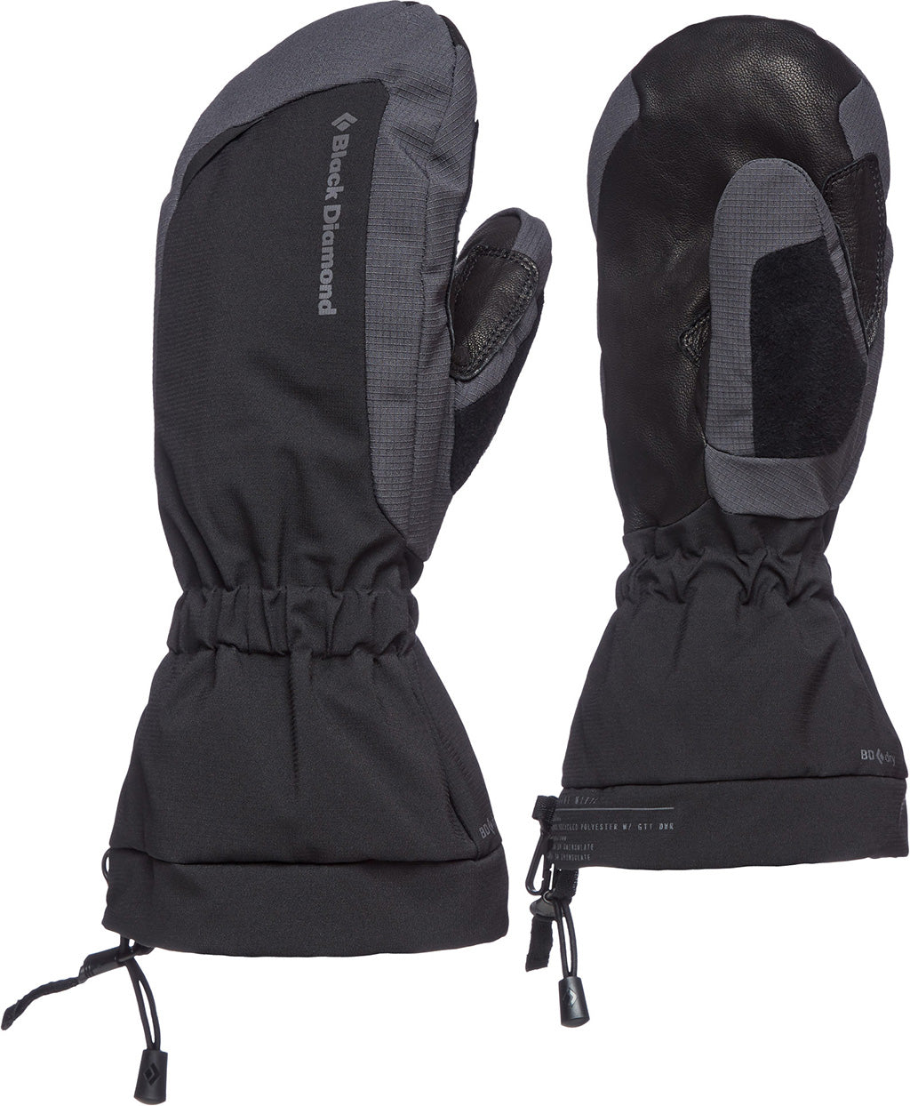 From snow-blown ridges to spring mountaineering missions, the black diamond glissade mitts pack four-season versatility into a functional and high-performance package. Built with a 100% waterproof bd.dry™ insert, an empel dwr on the shell, and a quick-cinching gauntlet cuff, the glissade fends off spindrift, slush, and sleet. A fleece liner and thinsulate® insulation keeps cold temps at bay while the reinforced goat leather palm holds up to extended all-mountain use.