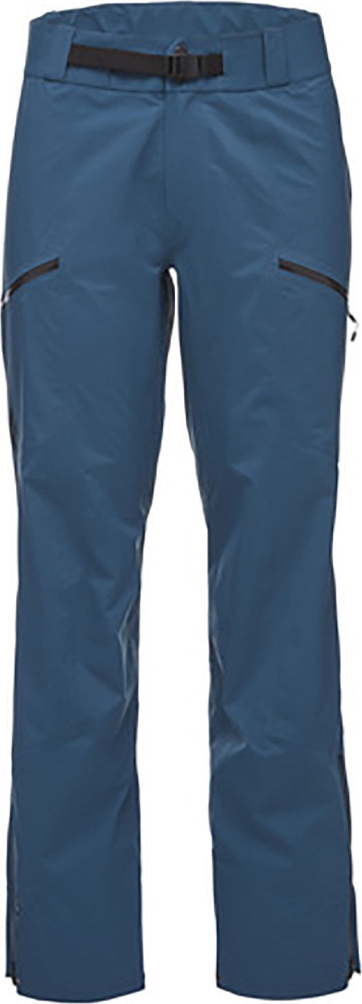 The men's HELIO Active Pants by Black Diamond are ski touring pants designed to move with you on the uphill, yet keep you dry and warm all day. They feature innovative Gore-Tex Active 3-layer technology, which breaths during high output activity, yet remains durably waterproof and windproof. With articulated knees along with a gusseted seat construction, the Helio Active Pants allow you to skin uphill comfortably and charge on the downhills. Two zippered thigh pockets store essentials and low-profile snaps and a smaller waist buckle keep unwanted bulk to a minimum. The pants’ internal gaiter is also low profile and optimized for touring boots, while an integrated RECCO reflector adds to the pants’ snow safety capabilities.