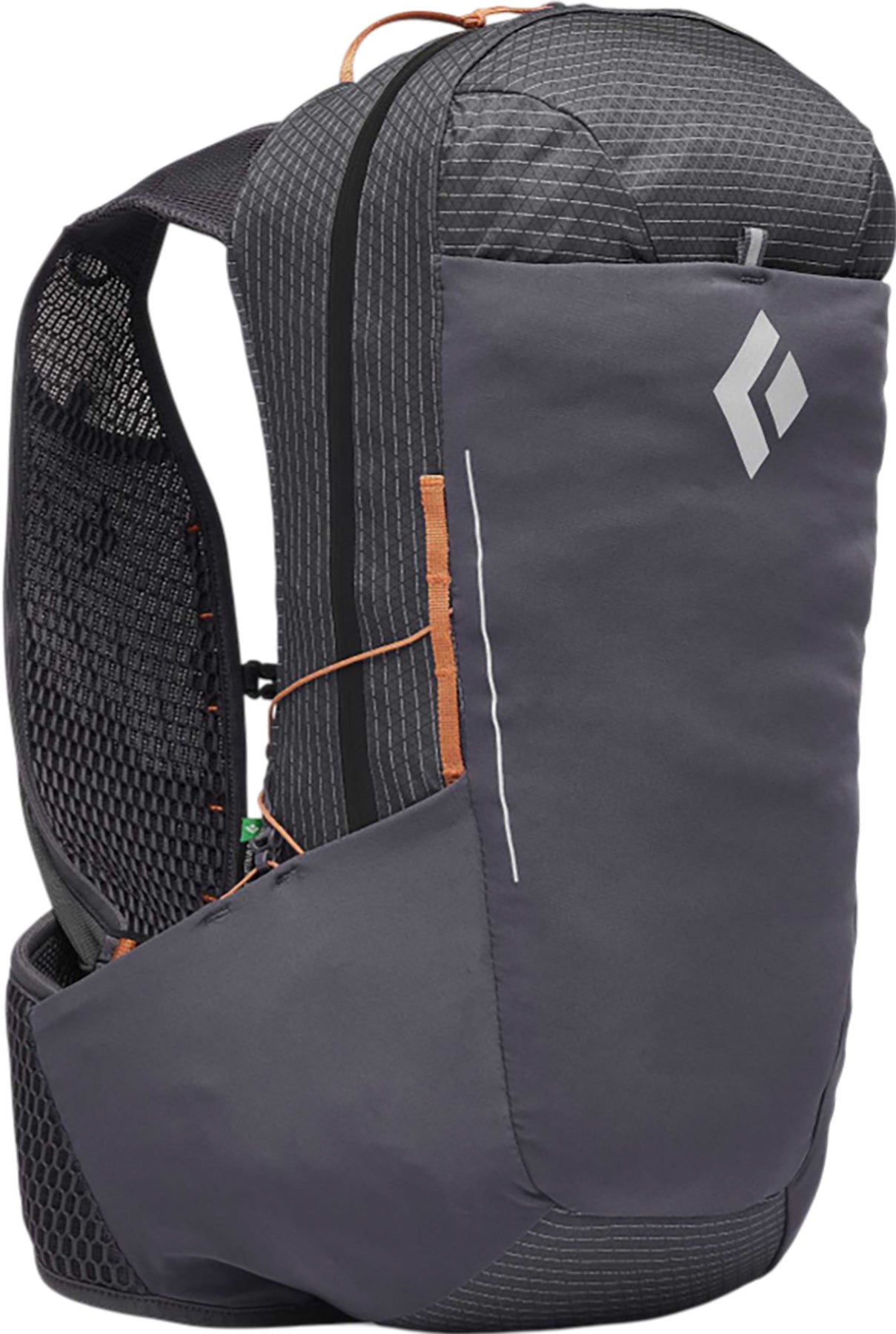 The Pursuit 15 Pack carries everything you need for a day of light and fast mountain travel. With a harness design inspired by the Distance series, the Pursuit Daypacks are built with a custom “BD Continuous Fit Harness” with a seamless “wing” body construction that contours to the body for maximum comfort on the move. The quick pull compression system adjusts depending on your load. With quick access side pockets and easy access trekking pole storage, snacking and stashing is easy on the move. The Pursuit Daypacks are made from 100% recycled body fabrics with a breathable back panel. The pack includes an external hydration storage pocket.