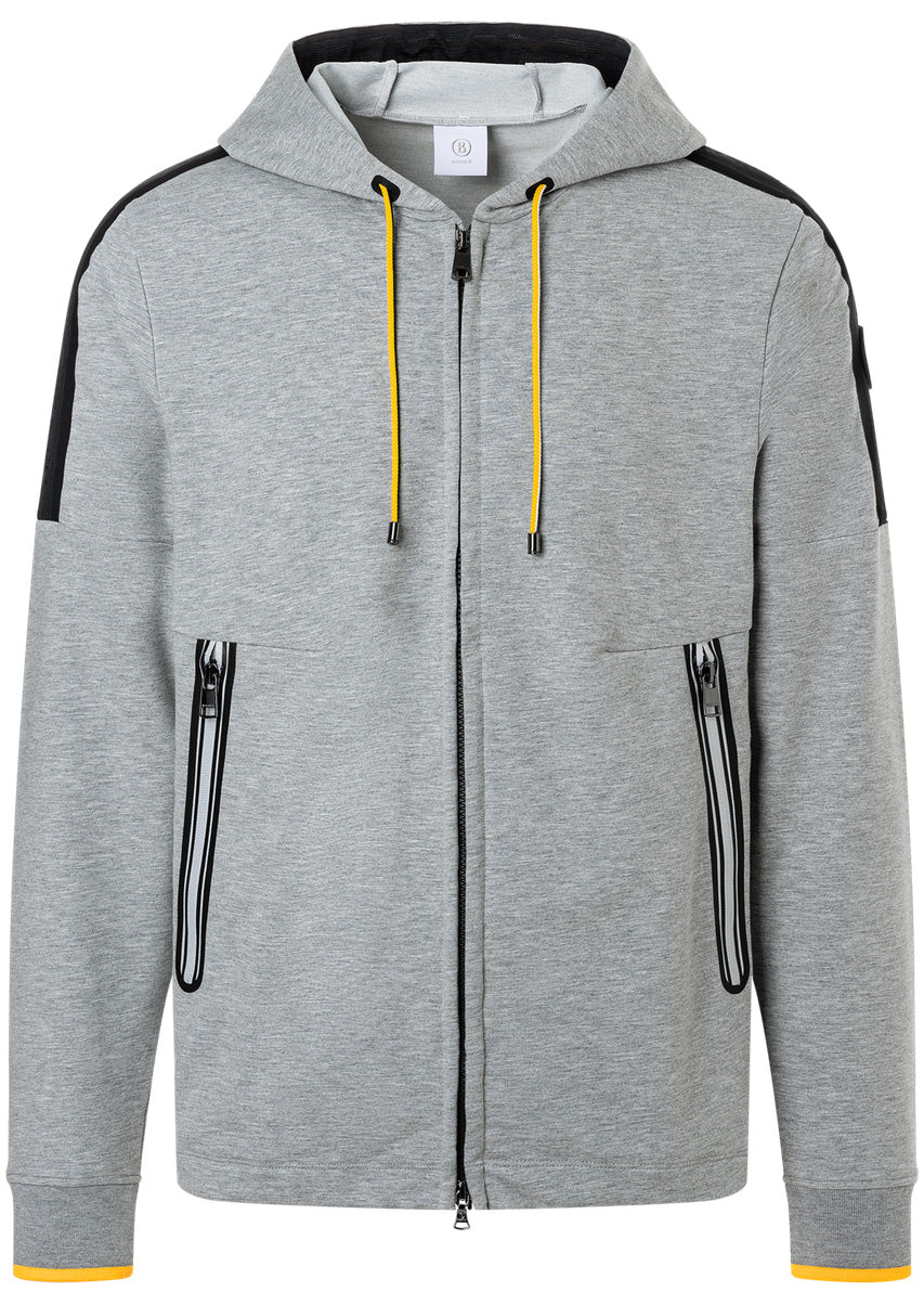 • Mesh trims with BOGNER lettering decorate the multicolored drawstring hood and the shoulder area