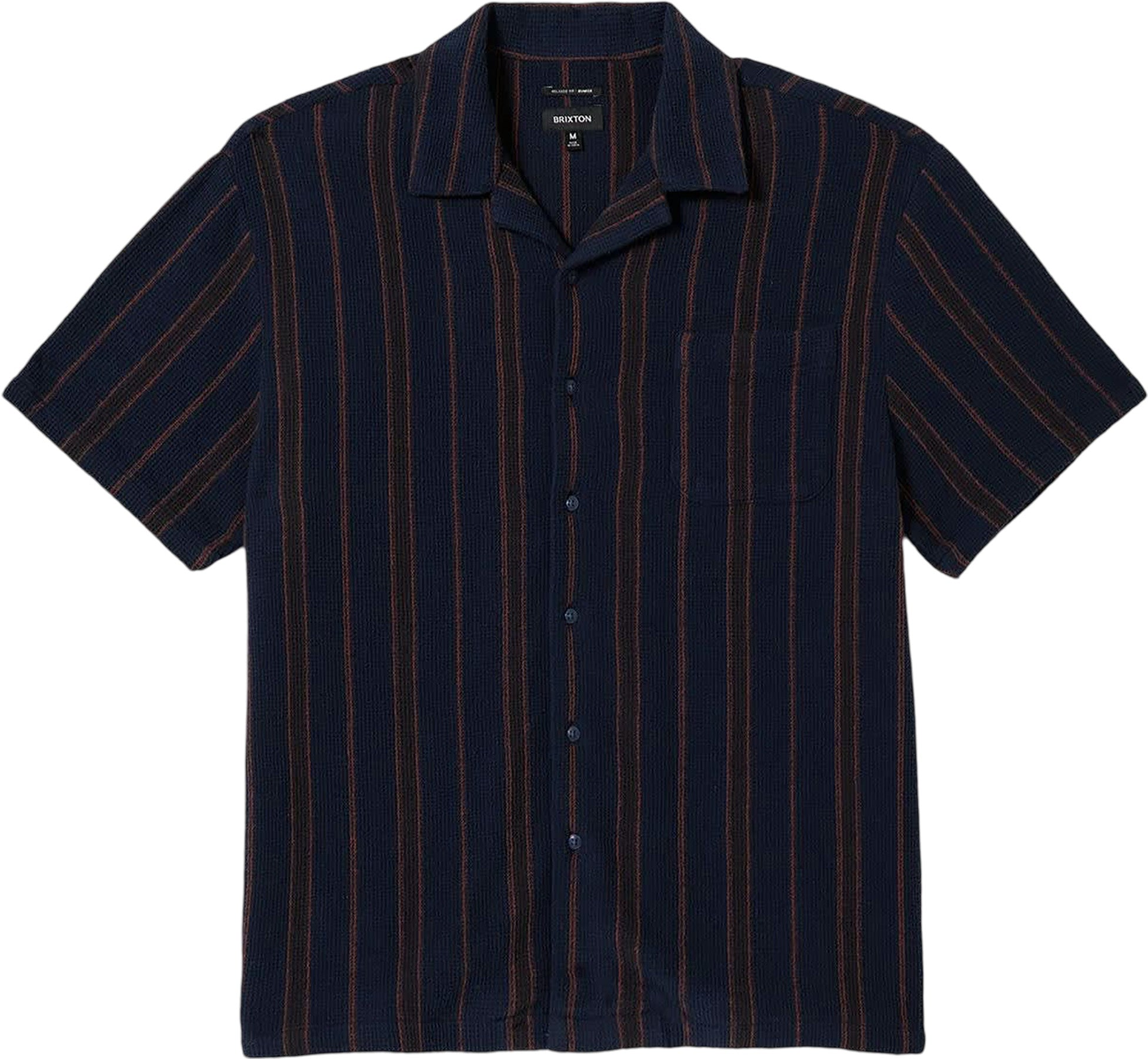 Features • Relaxed fit • 50s-inspired camp collar design • Custom waffle stripe pattern • Softener Wash • Left chest pocket • Straight hem