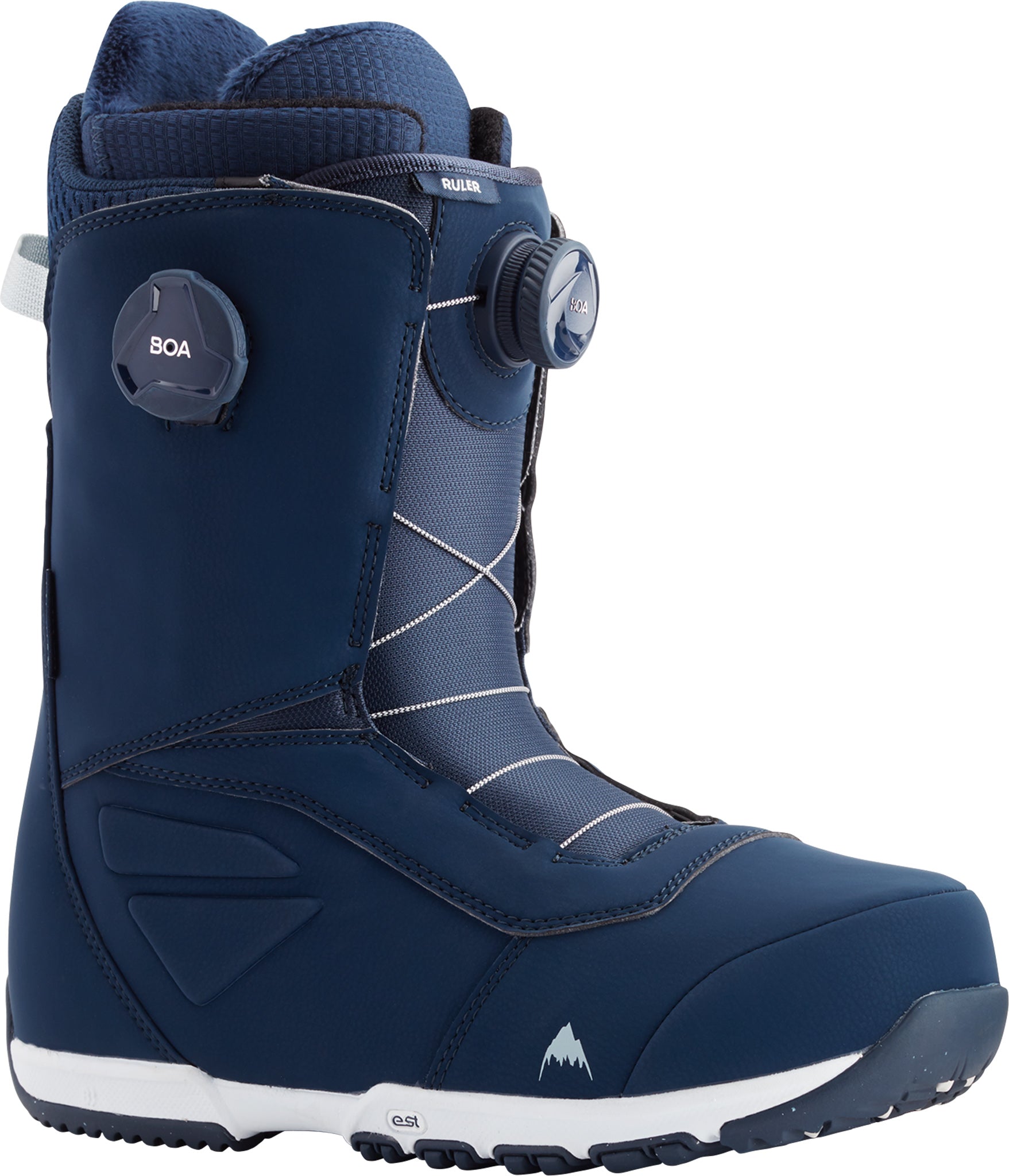 With a legacy of pushing personal skills to the pro level, the Burton Ruler boot is the boot for stepping to larger drops and burlier features. For riders seeking Ion-level performance but who lack the loot, the Dual Zone Boa® Fit System with Coiler Technology allows for effortless micro-adjustability. Forefoot and upper boot fit are controlled with a simple twist of the Boa® dial, all with the long-lasting performance of Burton-exclusive New England Rope laces and the Boa® lifetime guarantee. 3M™ Thinsulate™ Insulation in the liner and the added warmth of our Sleeping Bag heat-reflective foil defies arctic blasts. The medium flex PowerUP Tongue resists breakdown and maintains a steady ride from one day to the next.
