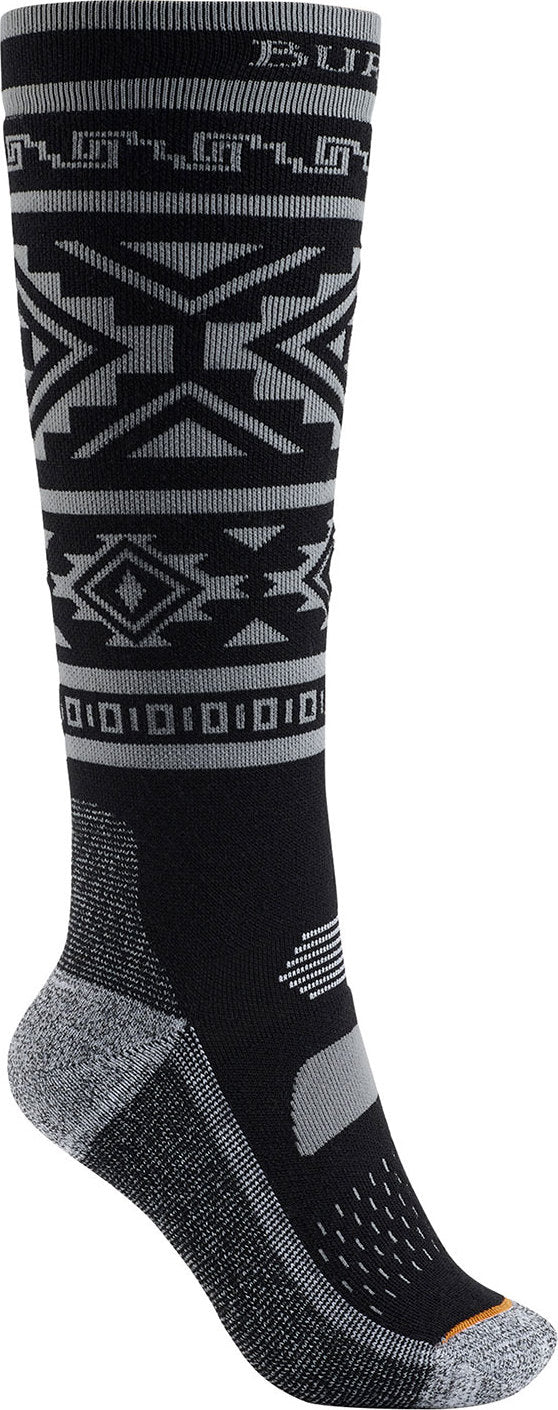 Socks are serious. The women's Burton Party sock is not. Quick-drying and boasting midweight warmth that works all season, they feature added elasticity and padding underneath the arch and around the ankle for rider-specific comfort, support, and cushioning. For warmth without the itch, the Merino Wool blend insulates efficiently, dries quickly, and works overtime to smell fresh. The Stay High Comfort Band keeps the sock up high around your calf.