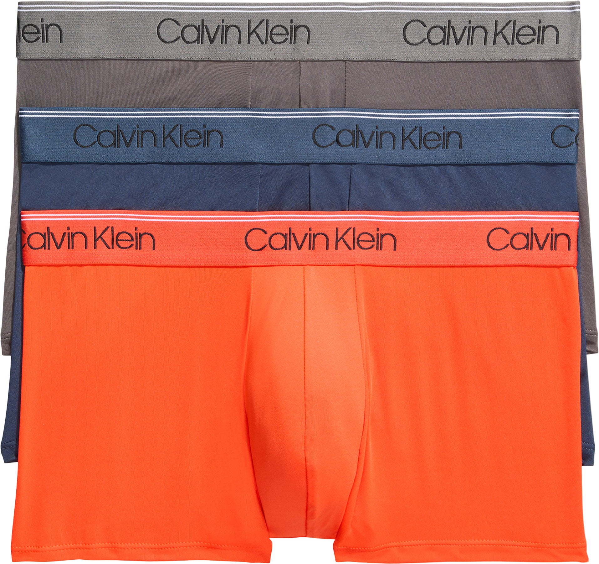 Maximum comfort with smooth microfiber stretch. These micro stretch low rise trunks come in a 3-pack and are made with a Calvin Klein repeating logo elastic waistband. Designed with a contoured pouch for a supportive fit. Features quick-dry fabric with moisture wicking for all-day performance.