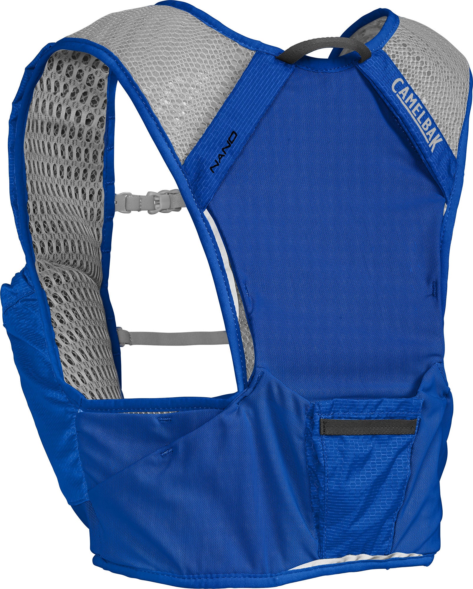 Updated for 2019 to be even lighter, the redesigned Nano™ Vest is the preferred choice of Trail and Ultra runners looking for a minimal run vest. Updates include a lighter more minimal dual sternum strap attachment system that has integrated reflectivity, a removable safety whistle and a new 3D Micro Mesh that is lighter and more breathable. The new Nano offers a pack-only weight of less than 140-grams and includes two best-in-class 500 ml Quick Stow™ flasks. The updated 3D Micro Mesh enhances air flow and breathability while still offering great cushioning for added comfort and it comes in multiple sizes to ensure a personalized fit. It maintains the same streamlined gear organization you love, including a secure phone pocket, several stretch overflow pockets and it's signature trekking pole carry for accessing poles while running.
