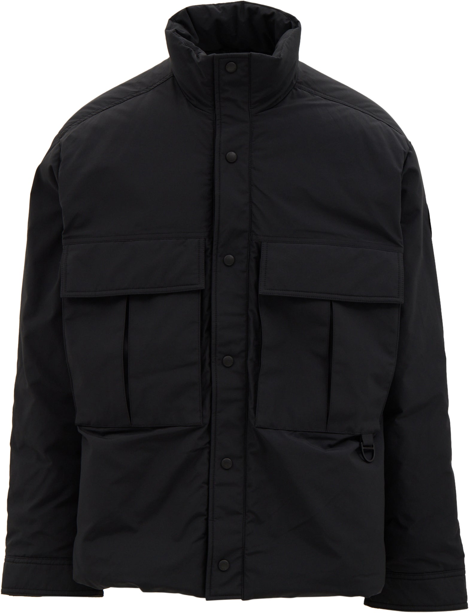 The Kirby Jacket is crafted from Cotton Nylon Mini Ripstop, a matte-finish fabric made with recycled nylon and organic cotton. It features a coin snap centre-front closure, adjustable tabs at the cuff, and two double-entry chest pockets.