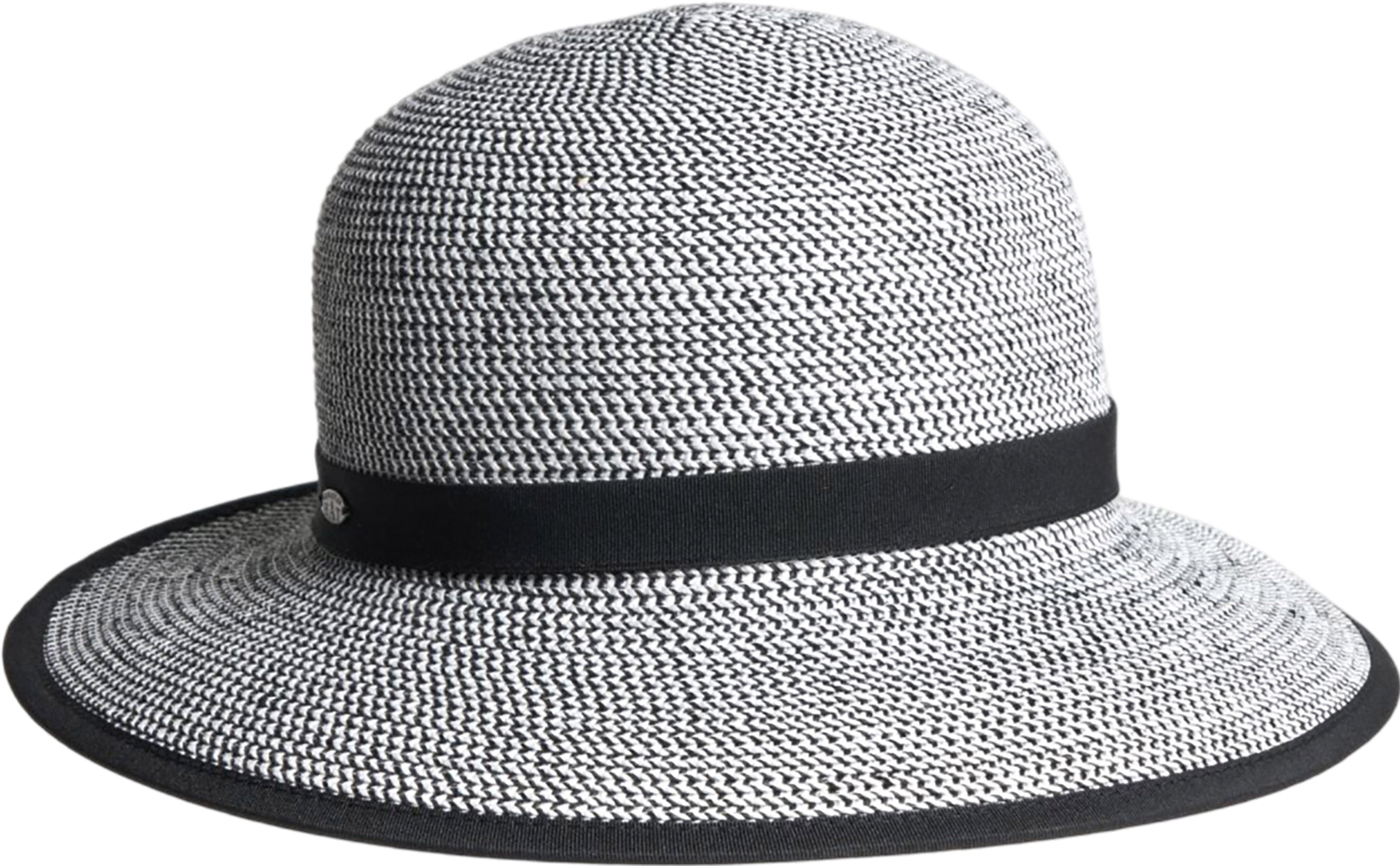 Versatile and stylish, it features a medium 3-inch brim with a flat back and fancy ribbon, making it the perfect summer accessory for lounging in the sun. Mix of polyester and paper straw for optimal packability. Designed in Montreal by century-old millinery Canadian Hat.