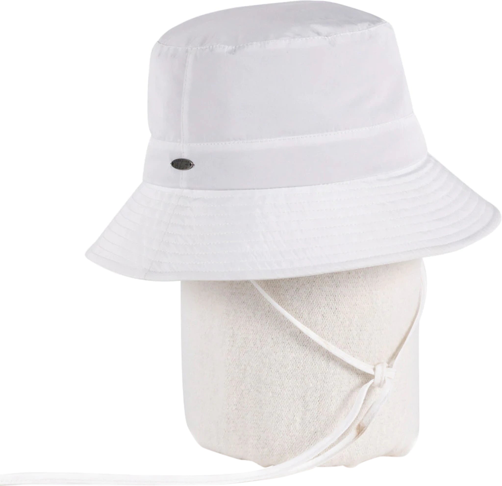 The crown is lined with mesh for breathability and comfort. Conveniently fold it to fit in your bag and throw it in the washing machine when needed. Equipped with adjustable straps and long chin straps. Rows of stitching on the brim beautifully highlights a slightly shiny fabric. Offers 50+UPF protection.