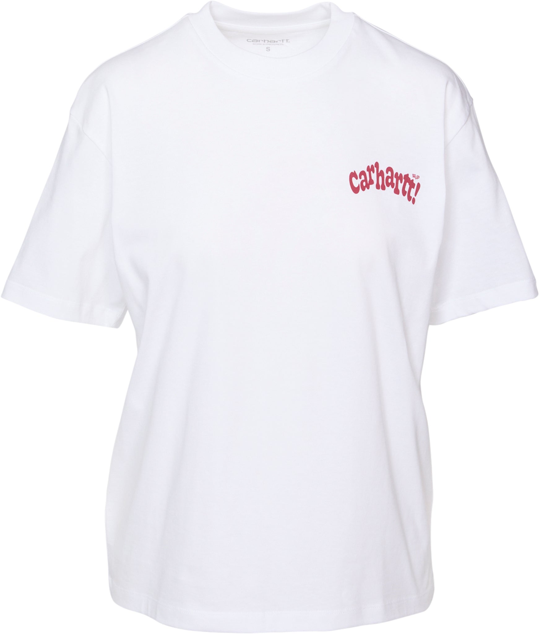 The Women's S/S Amour T-Shirt is woven from lightweight cotton jersey in a loose fit. A graphic print appears on the chest and back.