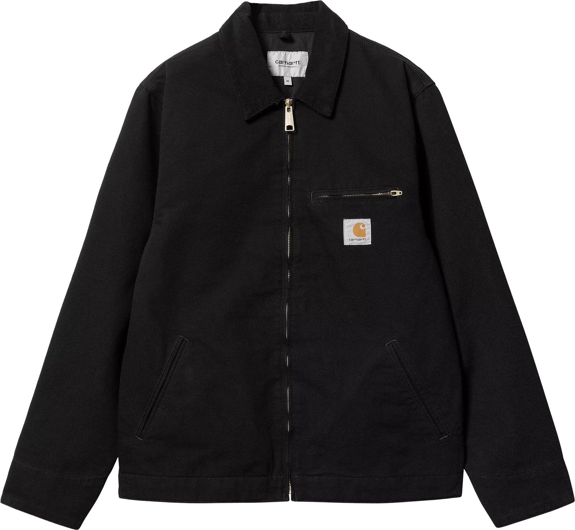 The Detroit Jacket is an unlined style made from heavyweight Dearborn Canvas, featuring a corduroy collar. The jacket fastens with a zip at the front, and can be adjusted at the cuffs and the bottom band with snap buttons. A woven Square Label appears on the chest.