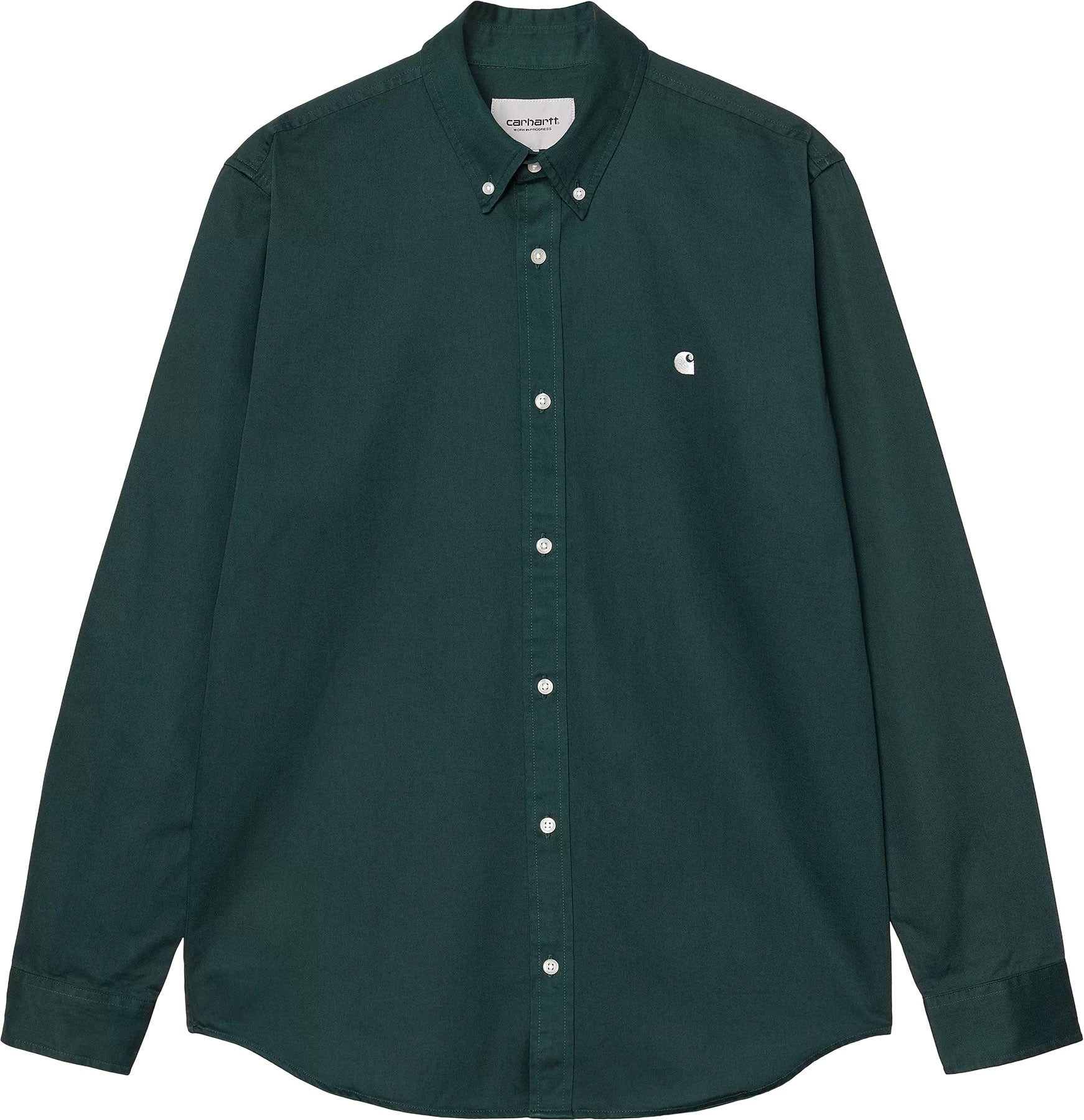 The straight-cut and pre-washed Carhartt Work in Progress Long Sleeves Madison Shirt closes at the front with a button strip. Its curved hem and contrasting buttons give it the edge you need to stand out. An understated brand logo is embroidered on the chest.