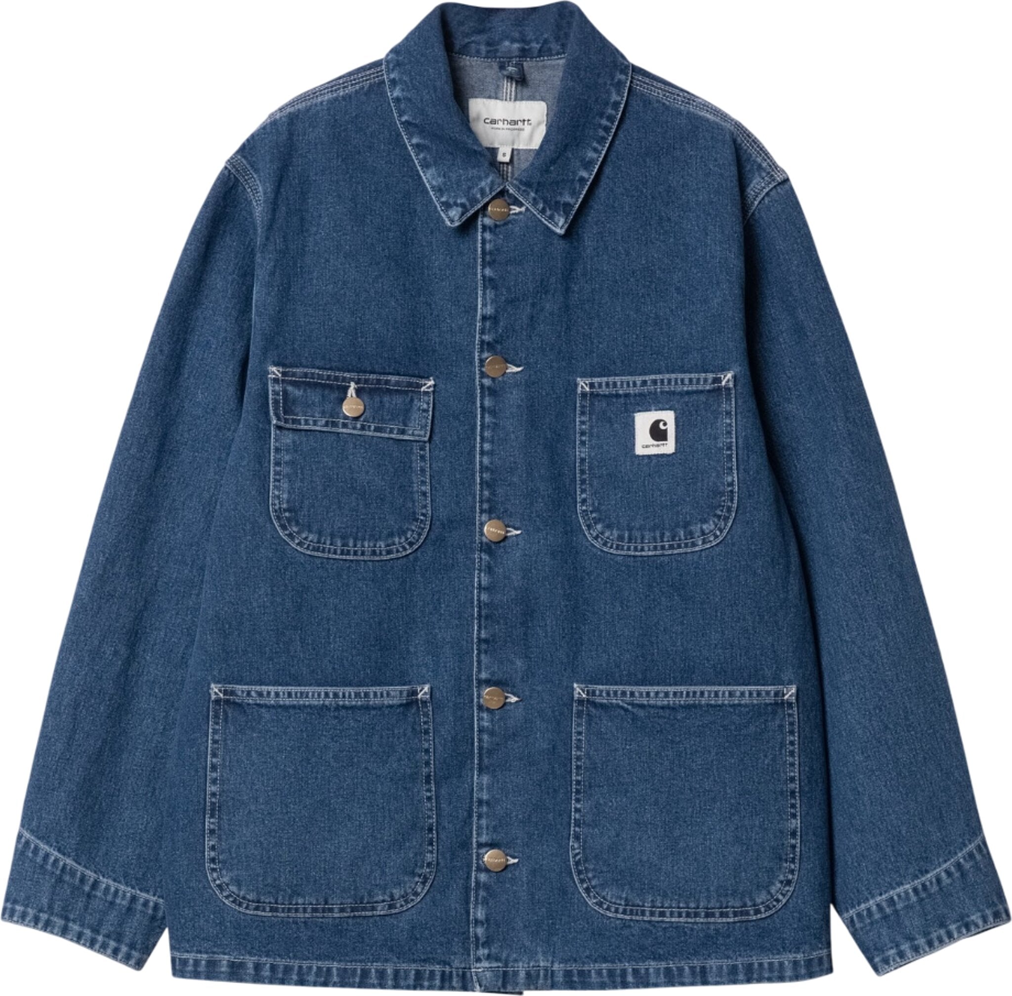 The Women's OG Michigan Coat is made of 11.25oz Norco denim, which is a robust cotton fabric. The unlined garment is inspired by a classic chore coat silhouette and has been cut in our original loose fit. Four front patch pockets offer a utilitarian touch, while triple stitch details provide extra durability. A Square Label on the chest pocket completes the design.