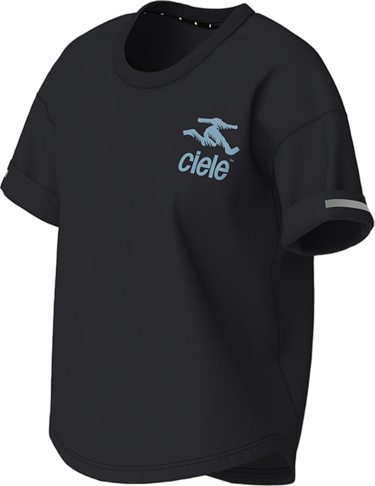A women's specific boxy fit for flow on every run. The comfort and cooling effect of GRS recycled cotton, in combination with GRS recycled polyester to bring you a moisture wicking, quick drying run ready t-shirt. We've added concealable reflective details, for that unplanned night run home, flatlock stitching for comfort and an all natural antimicrobial to defend against unwanted odours and harmful microbes that plague your everyday activewear. The water based print is designed with breathability in mind, so it won't get wet and sticky and uncomfortable like most printed t's do during a run. This is the ciele athletics women's not so basic t-shirt. Wear it every day but race day.