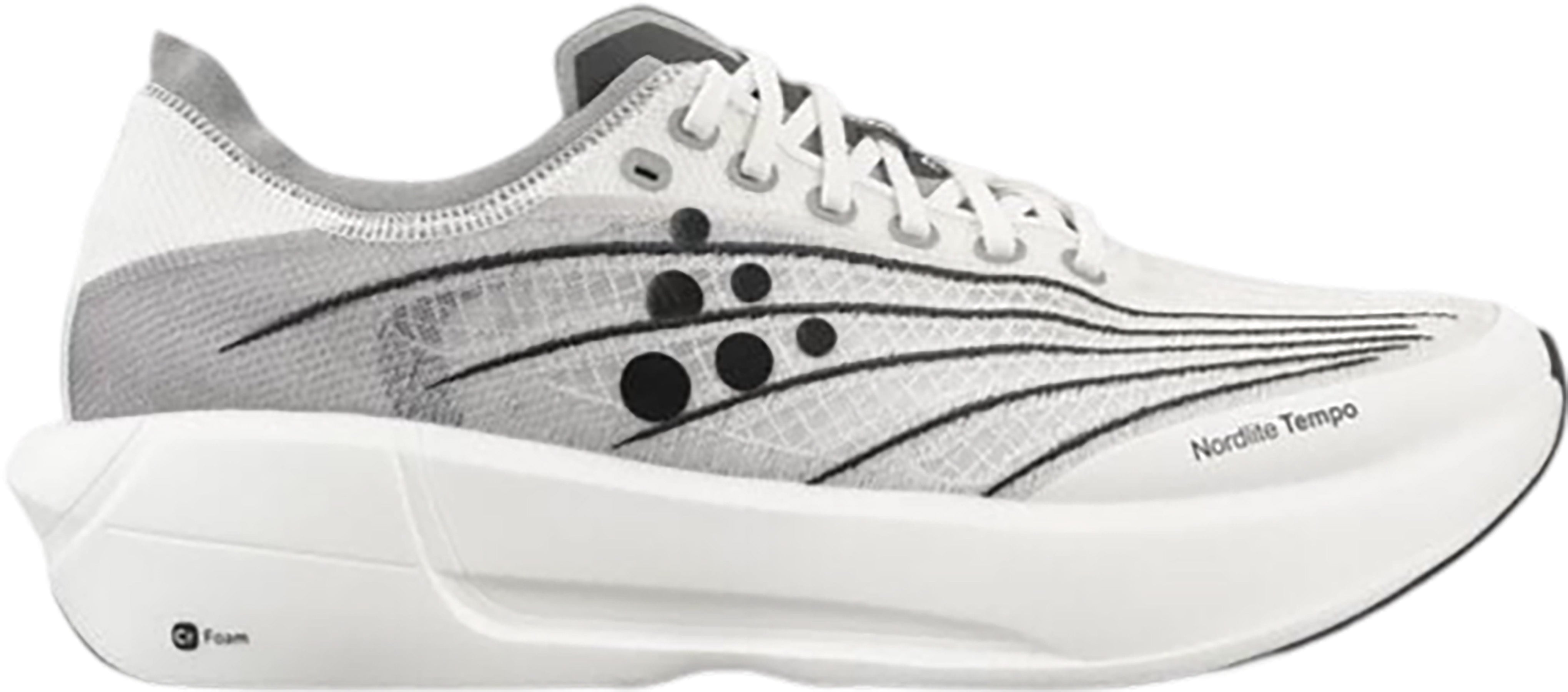 The latest Nordlite series from Craft Sportswear, the Nordlite Tempo, is fine-tuned for the advanced road runner. Its full Cr Foam Pro™ midsole. The addition of 15% Peba provides a combination of cushioning, stability, and lightweight rebound. The HyperGrip outsole is designed in collaboration with Vittoria, this high-traction outsole excels on road surfaces. The open woven single-layer upper, with embroidery and TPU reinforcements, ensures durability and comfort. This shoe is a showcase of innovation, designed to elevate performance and comfort for both elite athletes and everyday runners. Cr Foam Pro™ midsole including 15% Peba for responsive cushioning. High-traction outsole for road performance designed in collaboration with Vittoria.