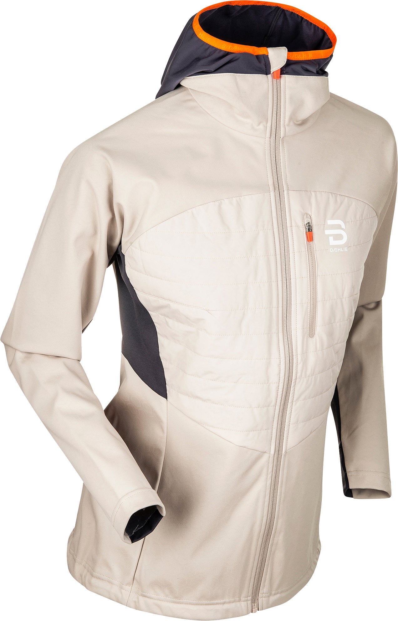 Jacket North Women is a hooded cross-country jacket meant for moderate-intensity training. Wind- and water-repellent 3-layer softshell with Thermore padding in front for extra insulation. Thermore Ecodown fiber, a 100% recycled fiber with highly effective insulation properties that feels plentiful and stays clump-free after washing. Mesh panels below arms and on back provide optimal ventilation and mobility. The jacket has a higher neck than average and a lightweight hood with brushed interior that provides good insulation. Bionic Finish Eco® technology on the fabric surface ensures that light rain and sleet run off. Two hand pockets in the front and one chest pocket, all zippered. Interior drawstring at bottom of jacket for individualized fit. When the temperature drops below -10°C, a cool pattern appears in the softshell material.