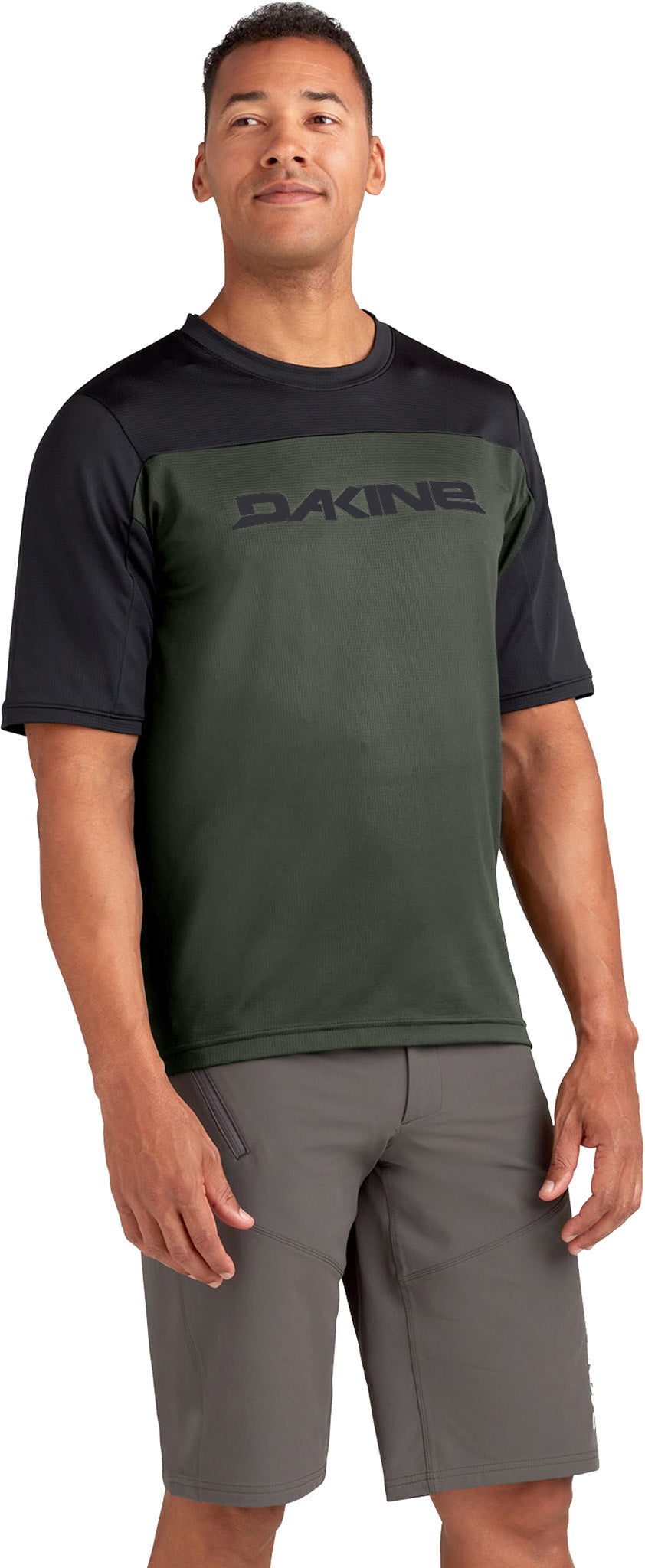 Any ride. Any day. Built to keep you dry, this men's short sleeve mountain bike jersey moves seamlessly from trailhead to town. Don't let the casual style fool you. It sheds sweat for quick evaporation and features four-way stretch for a natural range of motion on and off the bike. A two-inch drop hem keeps biker’s crack at bay and integrated odor control manages the funk factor.