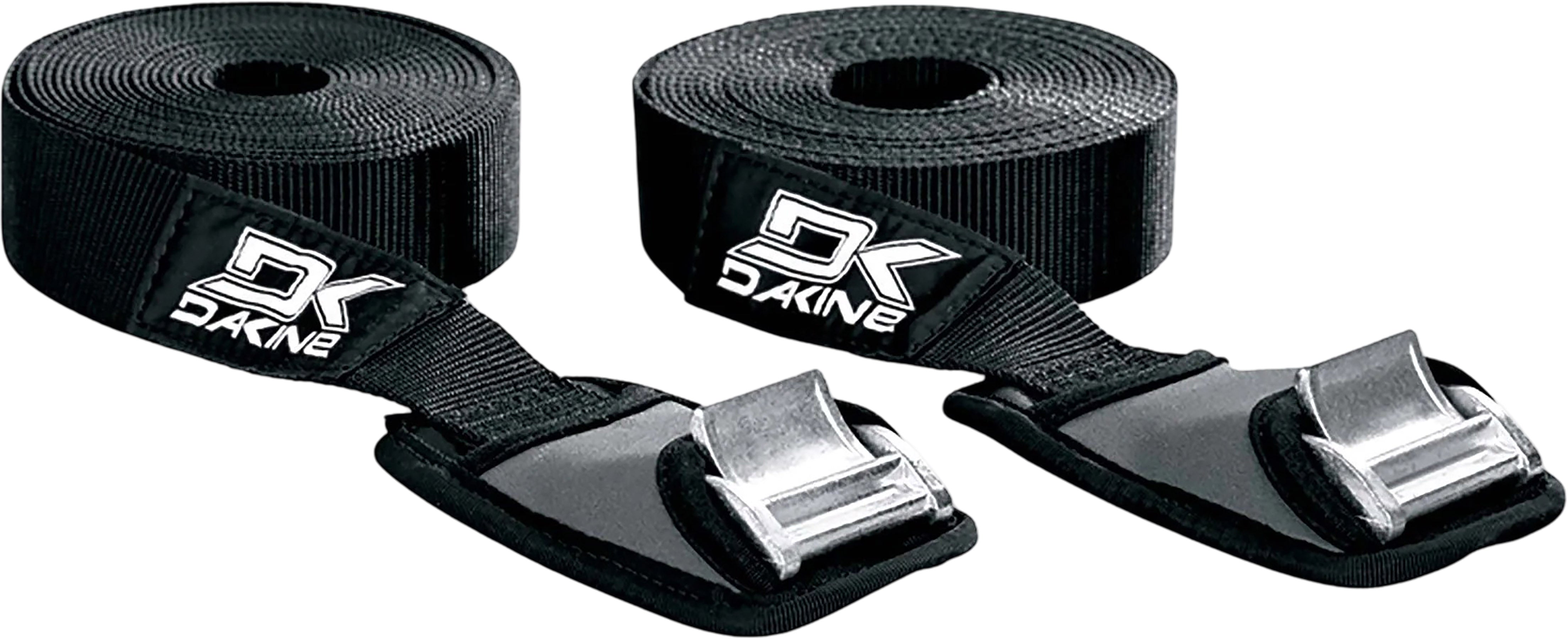 The Dakine Baja Tie Down Straps are heavy-duty straps designed for car roof racks. These straps are sold in sets of two 12-foot straps with 1-3/8 inch cam buckles for secure tightening. The Baja Tie Down Straps also feature a protective neoprene buckle housing.