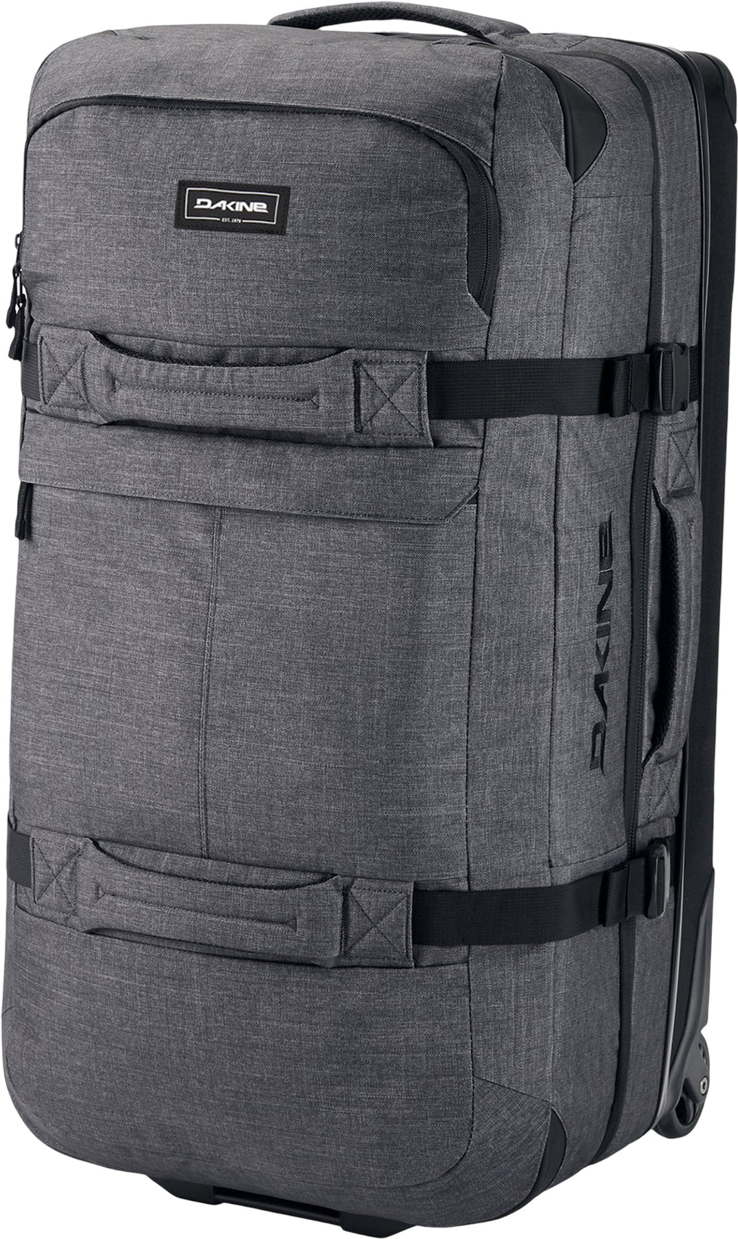 Living the adventure life is gear intensive. When your next mission calls for a little of everything, the Dakine Split Roller 110L bag makes getting it all there easy. The bag divides organization into a split-level design that gives easy access to multiple large compartments. It's like a traveling locker room that you can live out of while on the road. Mesh dividers maintain visibility and the collapsible Split-Wing feature lets you compress the bag for easy storage when not in use. Bomber oversize zippers provide years of reliable closure and durable wheels keep you rolling down sidewalks and even dusty roads with ease.