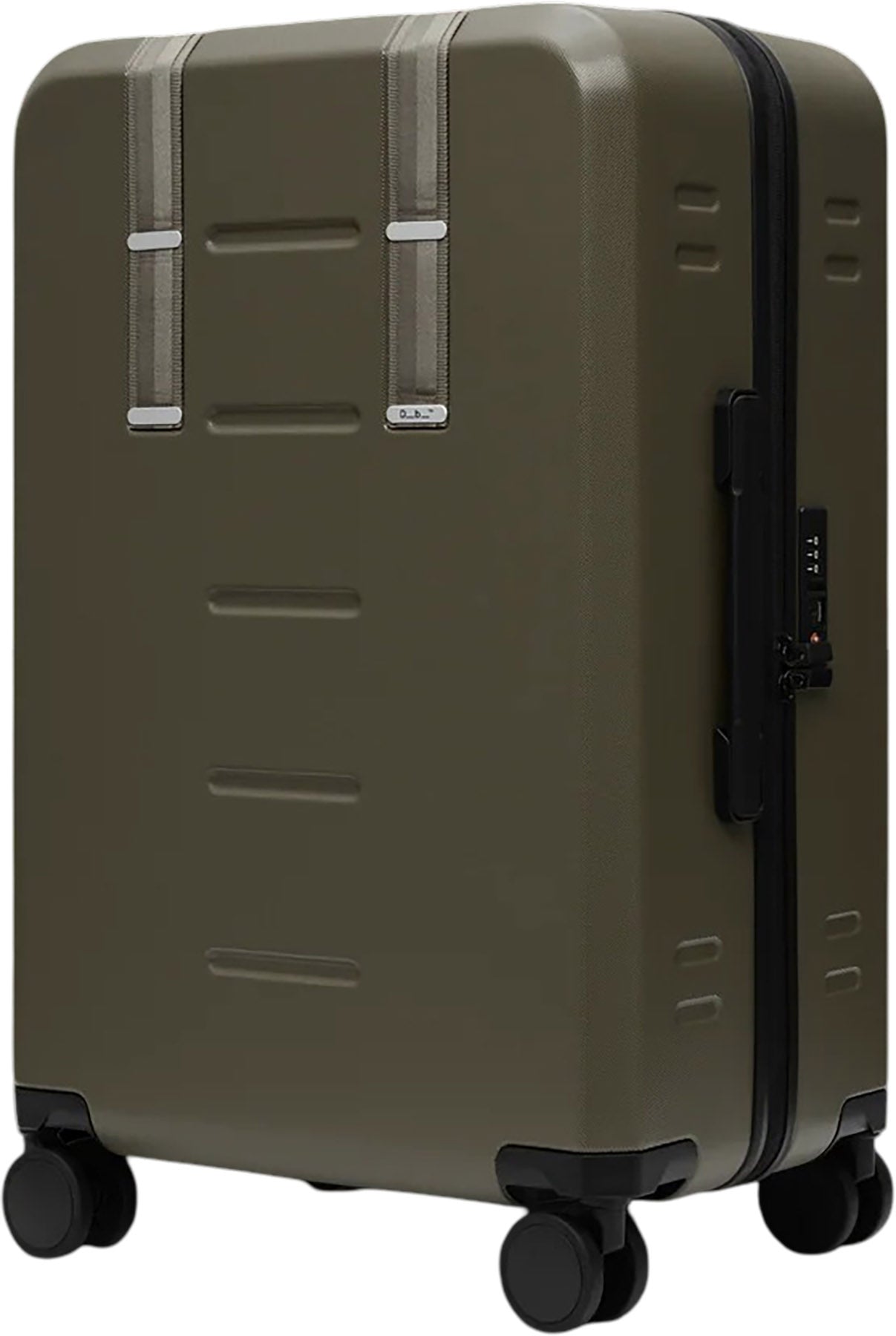 The Check In borrows features from the Ramverk Pro range, including a custom telescopic trolley handle and 360° ultra silent Japanese Hinomoto wheels. Inside, there is a double interior divider system for privacy. Outside, the Check In Medium features Hook-Up System™ webbing, allowing you to attach a Hugger Backpack while traveling. The trolley handle, wheels, and carry handle are all replaceable in the event of damage.