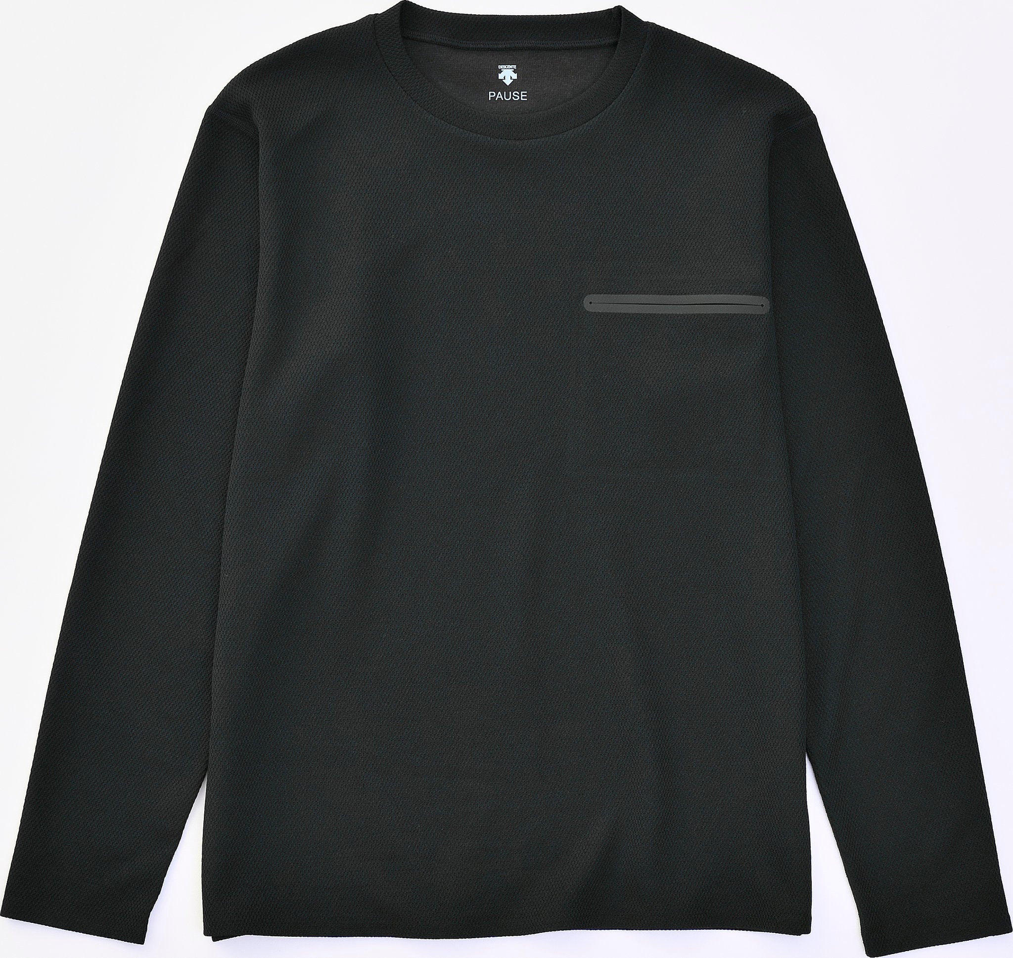 A functional pullover shirt with a tape-sealed chest pocket in a soft, absorbent, honeycomb-textured, polyester fabric. Suitable for sports and leisure.