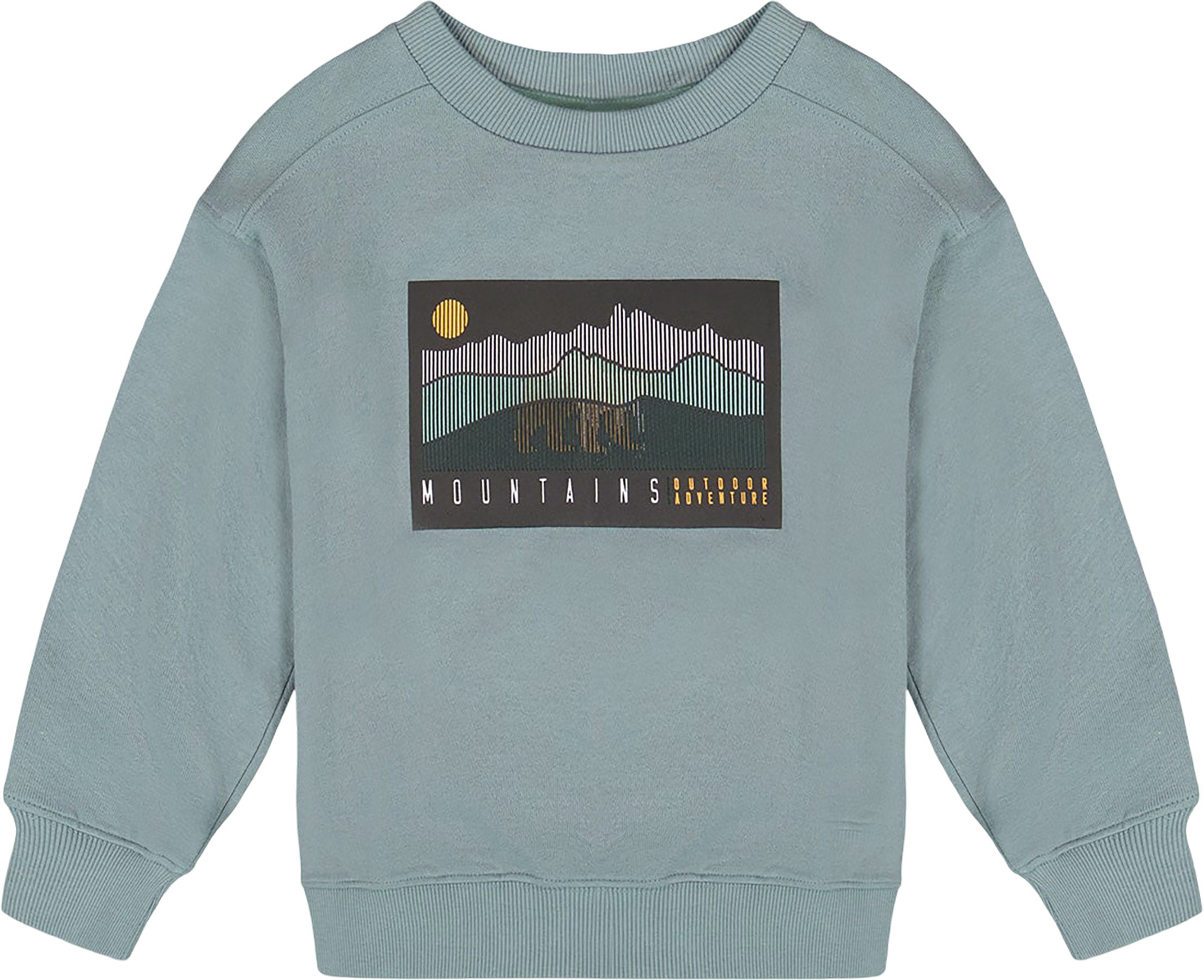 He can play all day in total comfort in this lightweight French terry top. This sweatshirt featuring an animated print that changes image when tilted from side to side-a fun and dynamic detail kids will love! With long sleeves and a crew neckline, this versatile sweatshirt features a cozy fit with a cool mountain graphic on the chest that makes it perfect for the boy who loves the great outdoors.