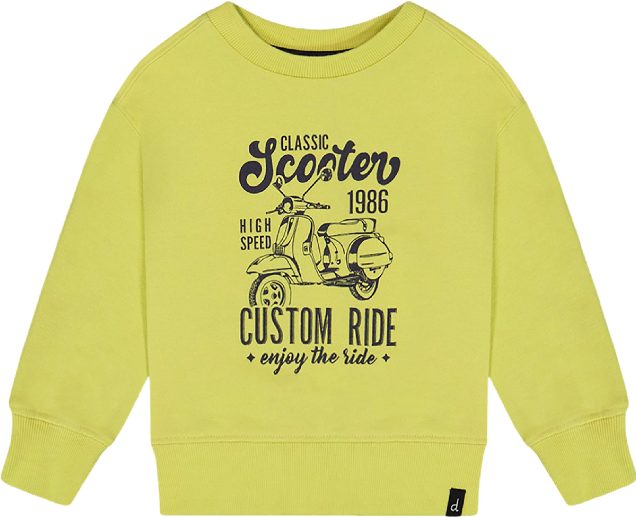 A cool moped graphic adds vintage-inspired style to our Pullover Graphic Sweatshirt Lime Green. Comfy and cozy, this sweatshirt features a loose, relaxed fit with long sleeves, dropped shoulders, and a crew neckline. It's a bold, bright way to layer up on a chilly spring or summer day!